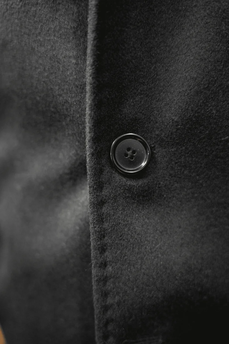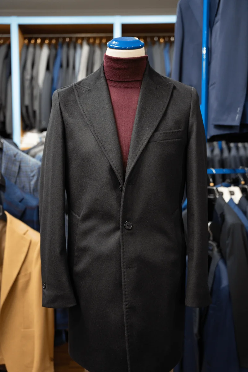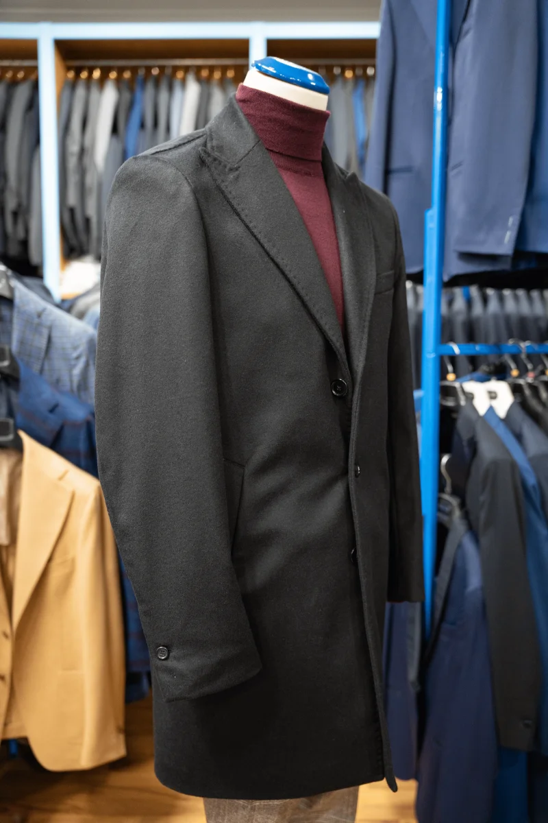 CAPPOTTO NERO IN LANA E CASHMERE, MONOPETTO TRE BOTTONI.