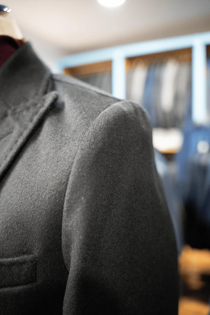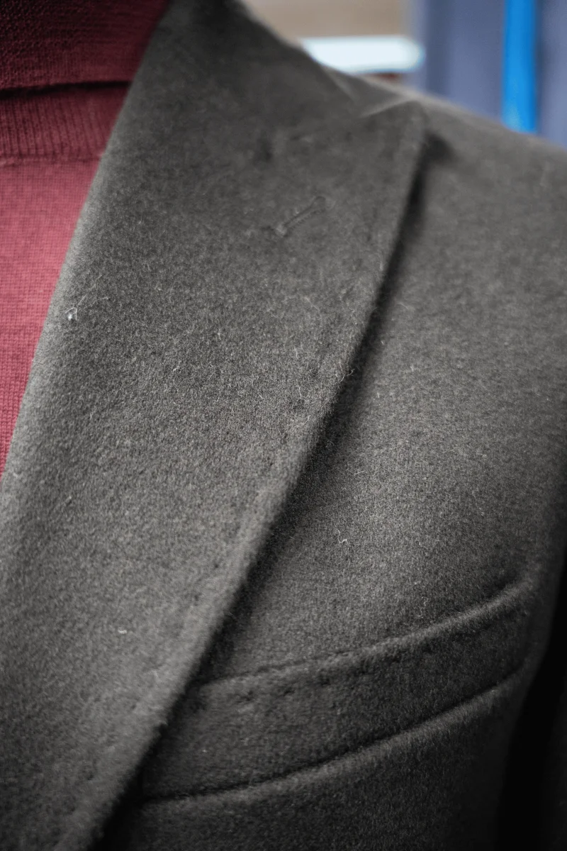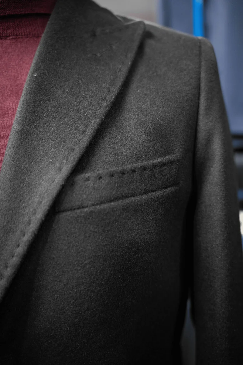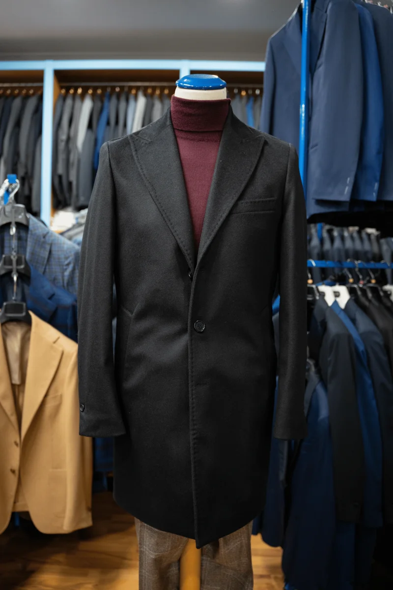CAPPOTTO NERO IN LANA E CASHMERE, MONOPETTO TRE BOTTONI.