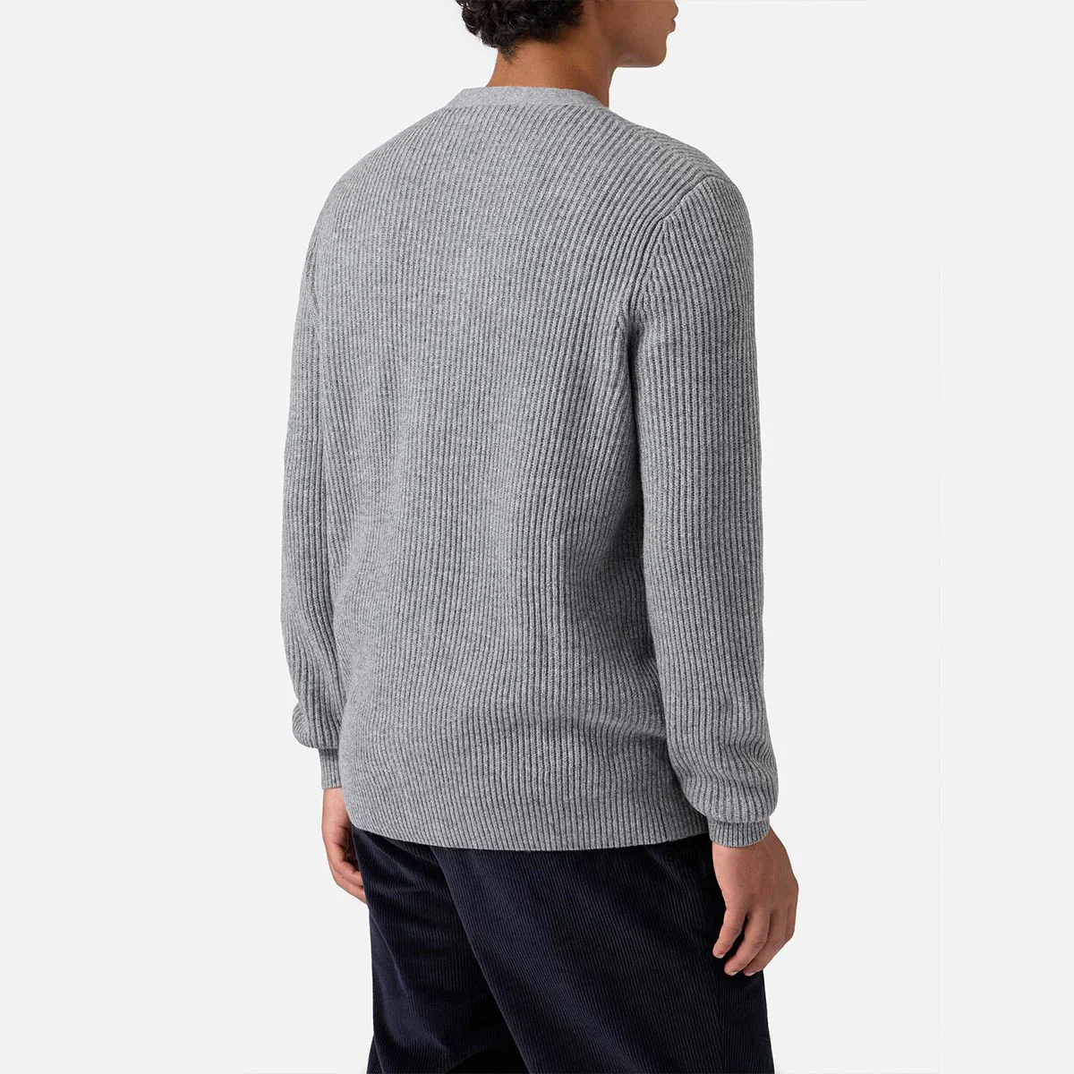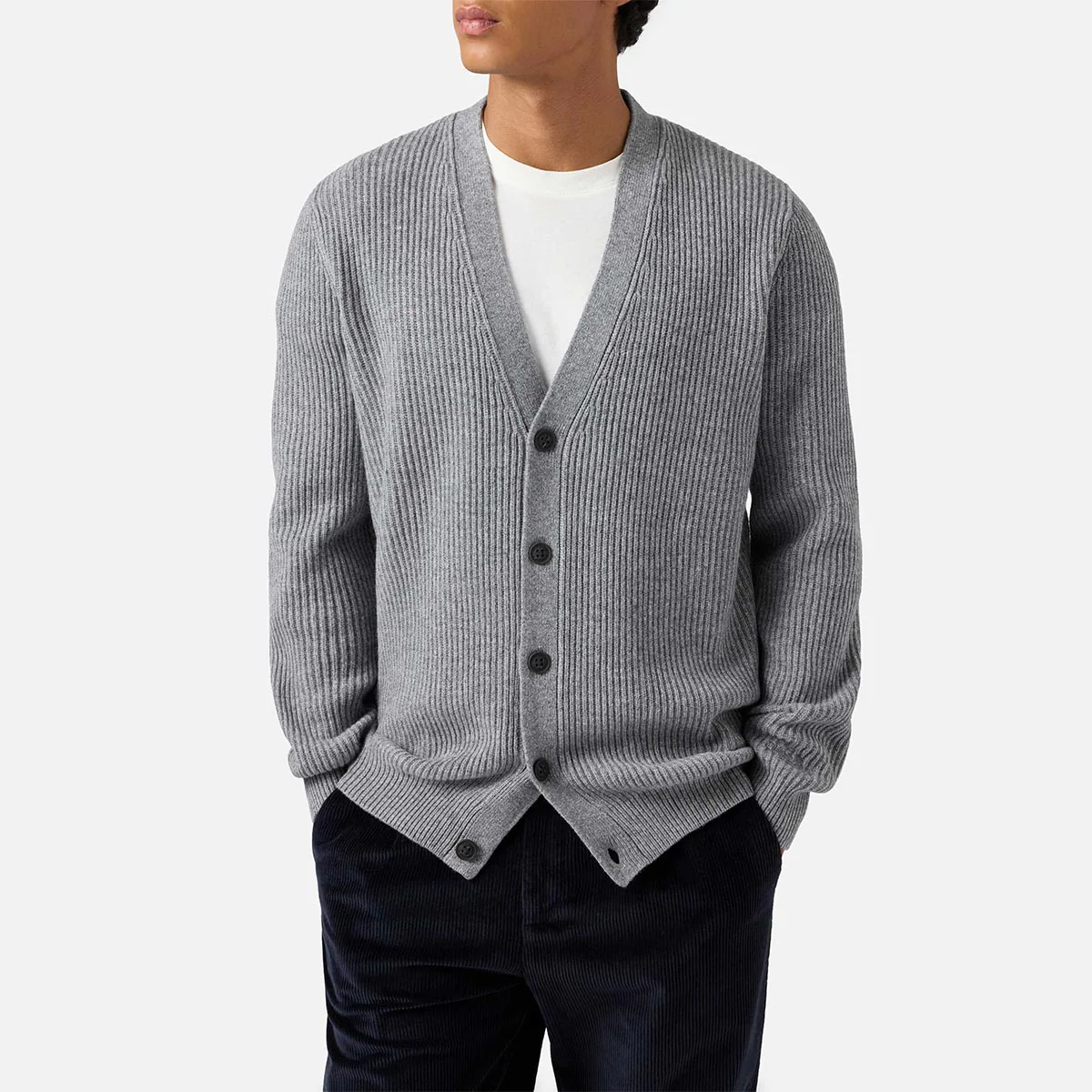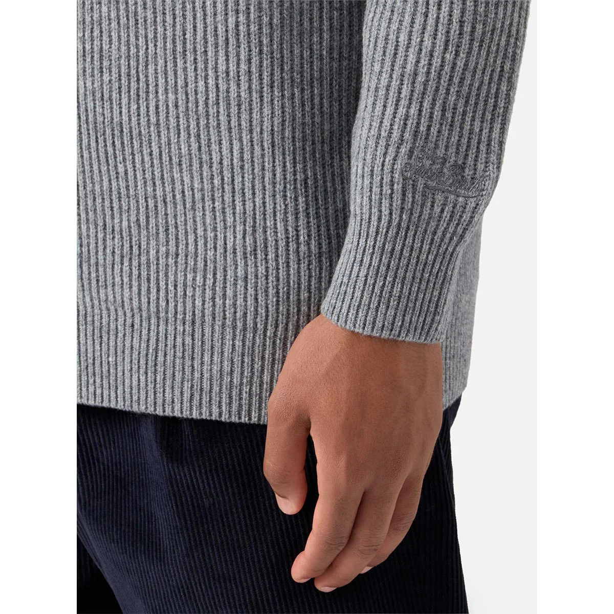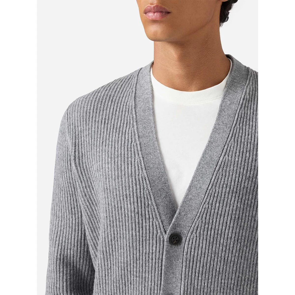 Cardigan a costa inglesi Lana merino cardataScollo a VManiche lungheFondo e polsi a costeVestibilità regolareRicamo polso St. Barth. Apertura a bottoniTinta unita grigio melange