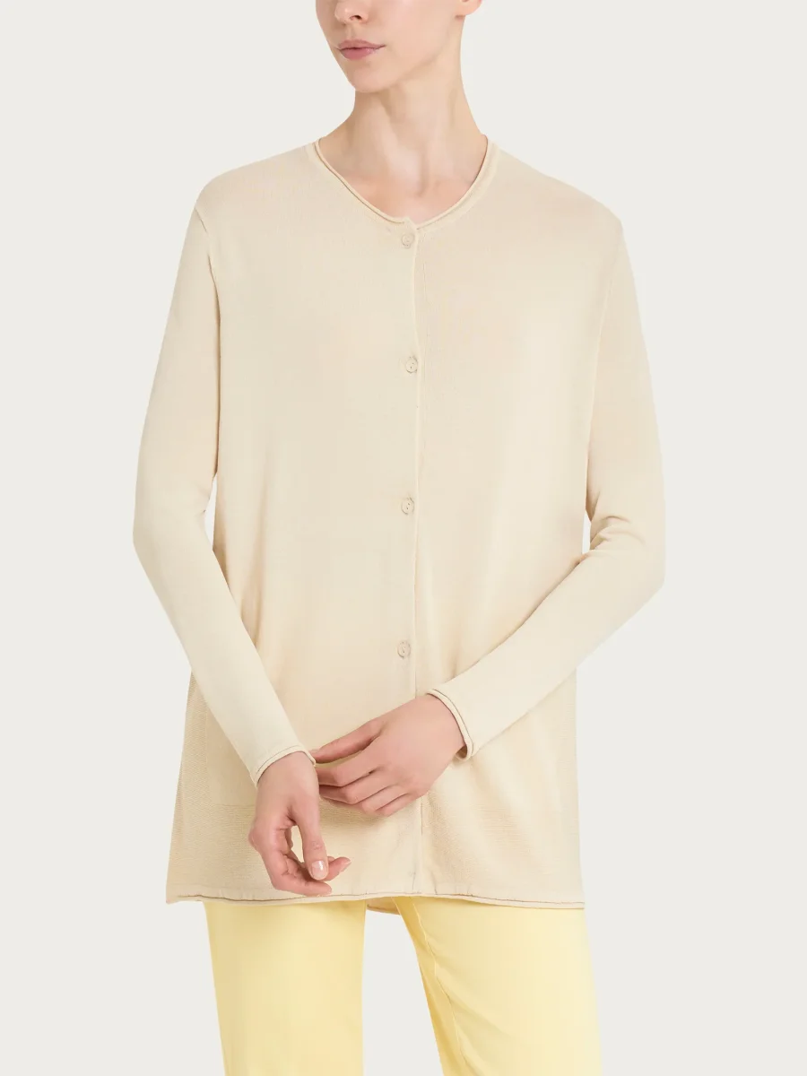 Cardigan aperto con bottoni e manica lunga in finezza 12.