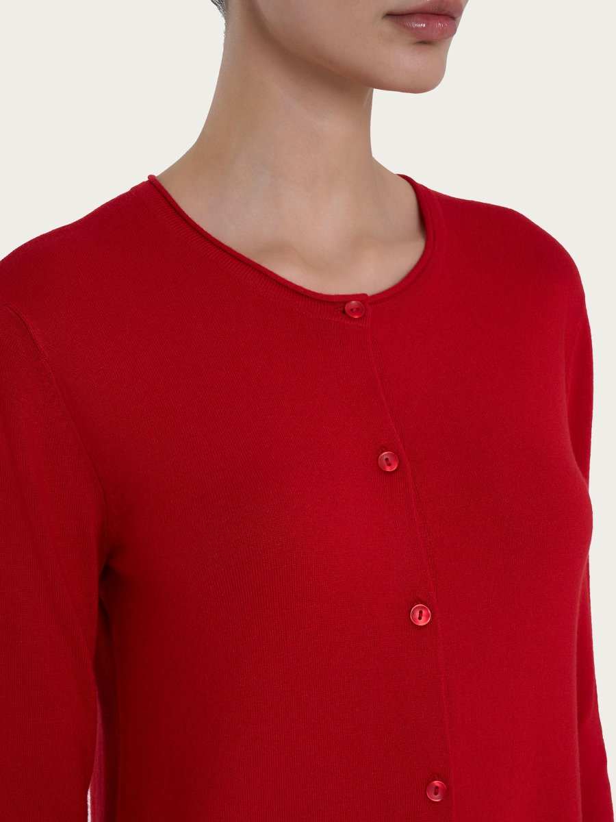 Cardigan aperto corto con bottoni e con le maniche lunghe in finezza 12.