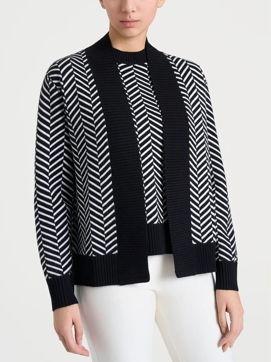 Cardigan aperto corto senza bottoni e con le maniche lunghe in finezza 12.