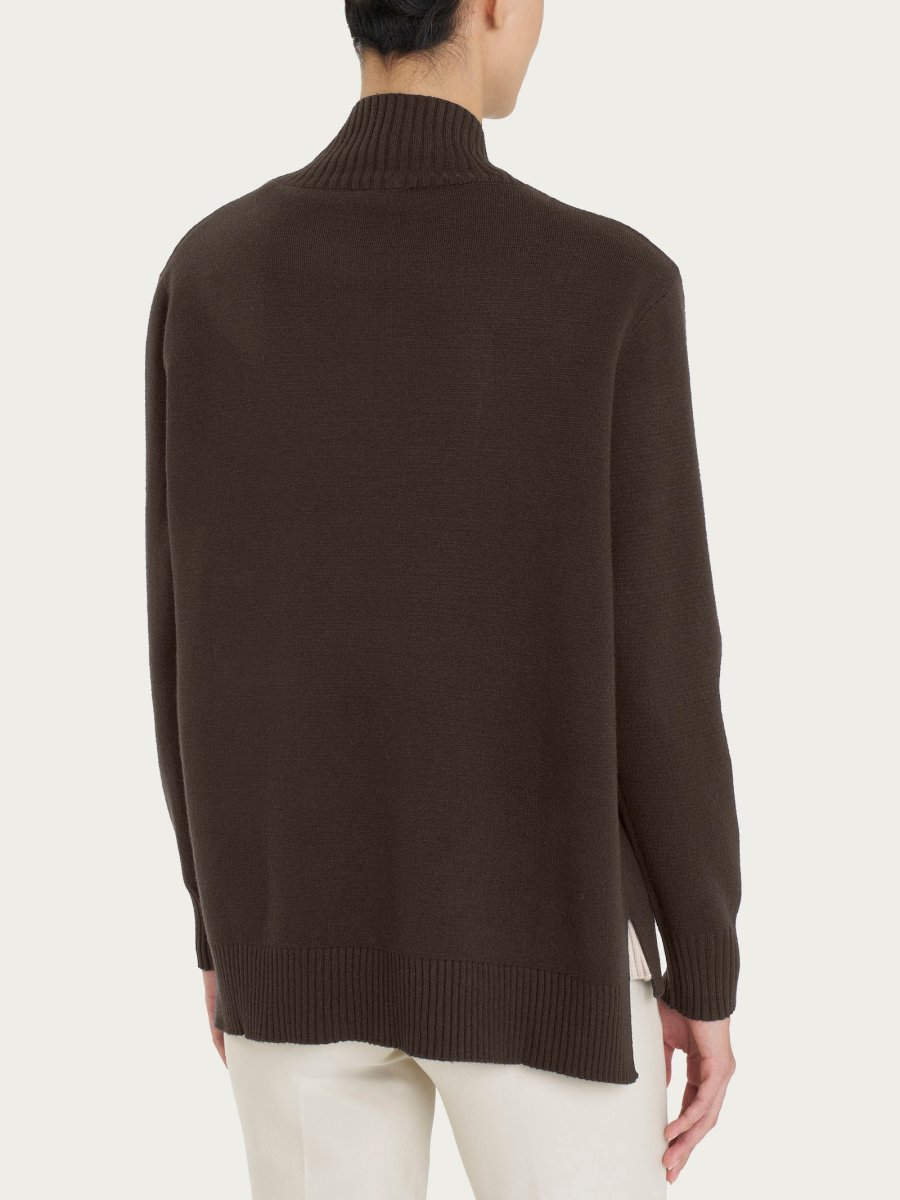 Questo modello è caratterizzato da spacchetti laterali sul fondo che rendono il capo svasato e da pratici polsini.