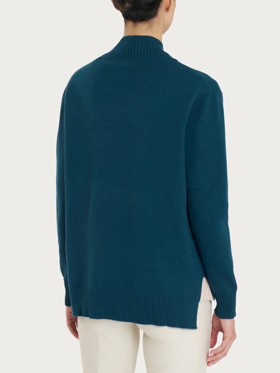 Questo modello è caratterizzato da spacchetti laterali sul fondo che rendono il capo svasato e da pratici polsini.