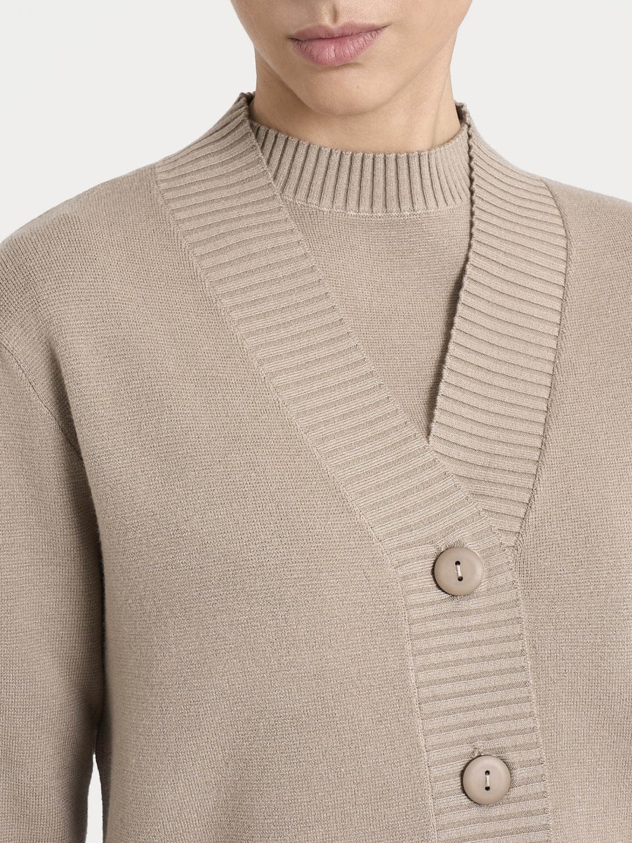 Cardigan asimmetrico con bottoni in Super Soft – Cammello