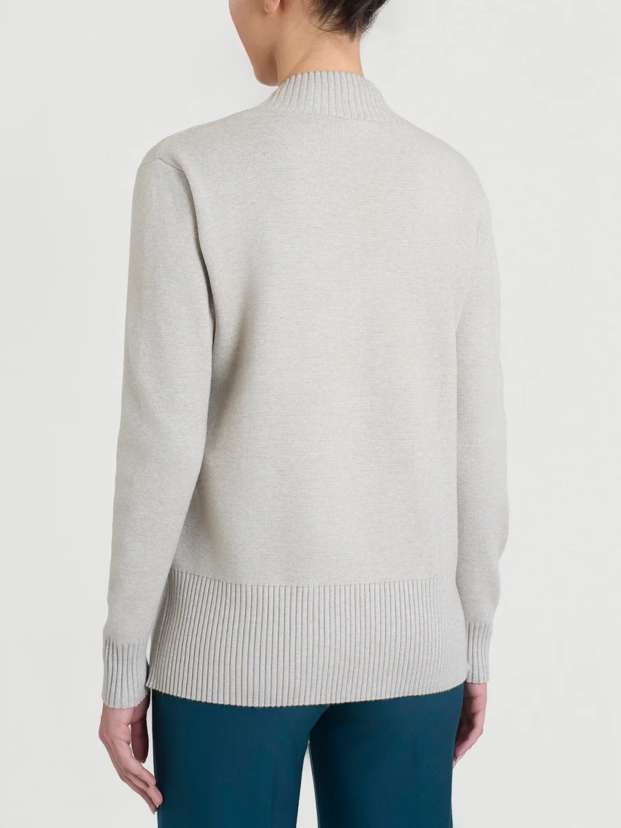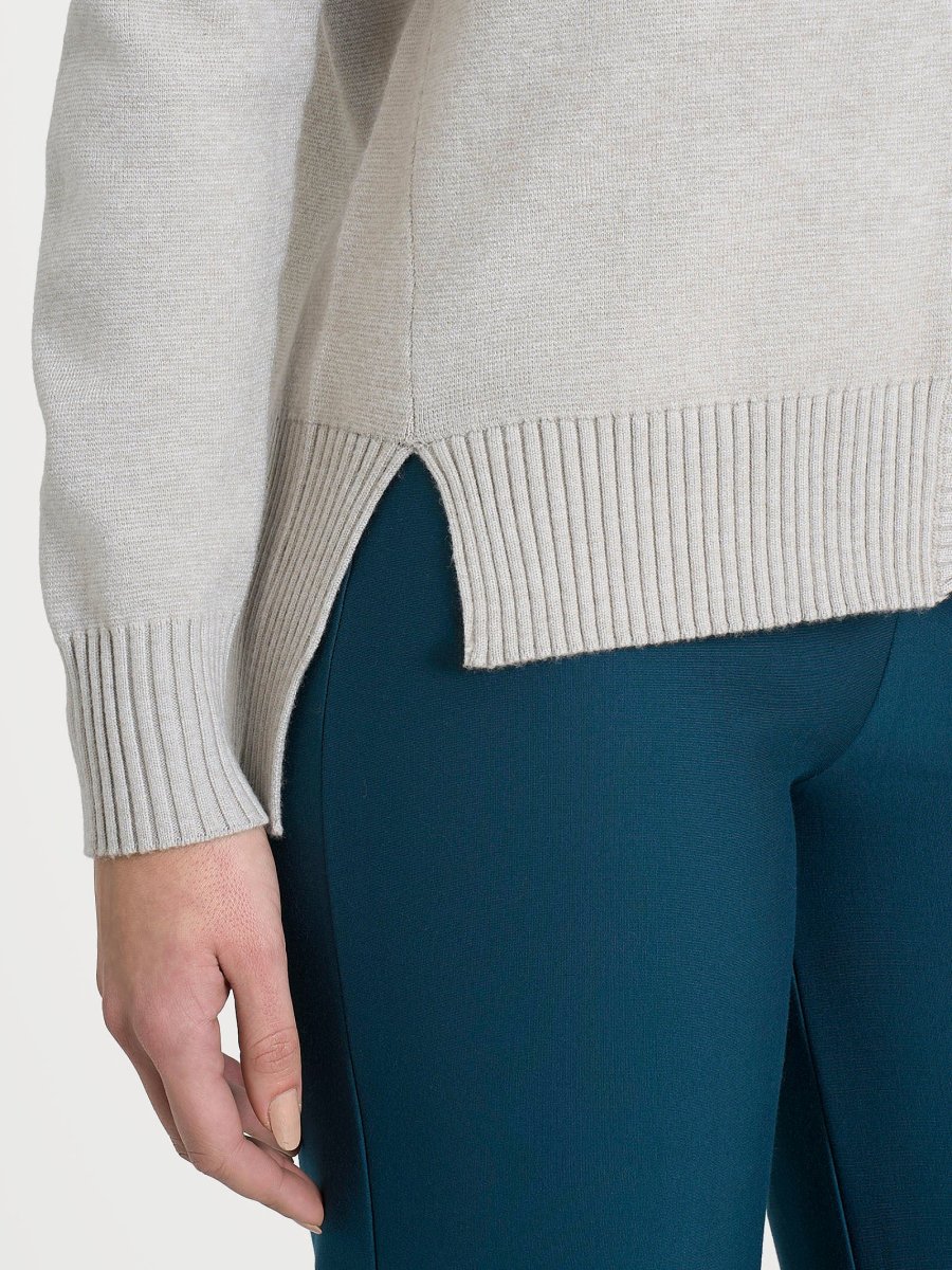 Questo modello è caratterizzato da pratiche aperture laterali e pratici polsini che richiamando le bordature in costina 3×3 definendo con eleganza il capo.