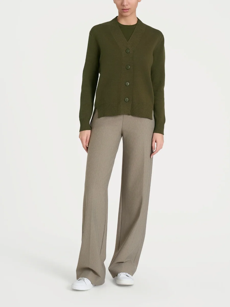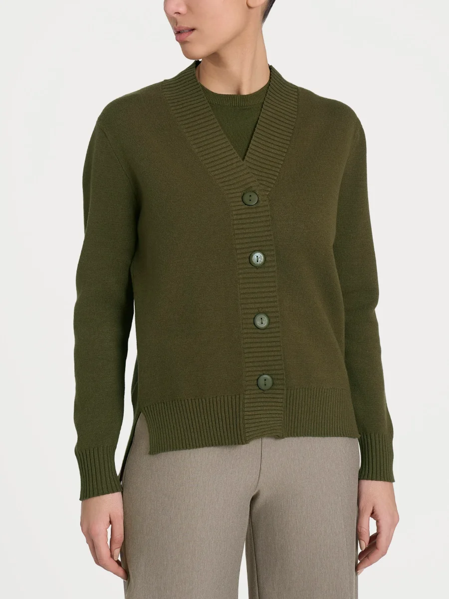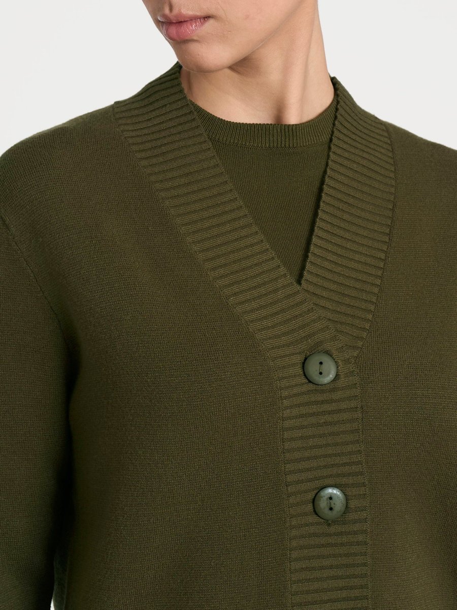 Cardigan asimmetrico con bottoni in Super Soft – Dark Olive