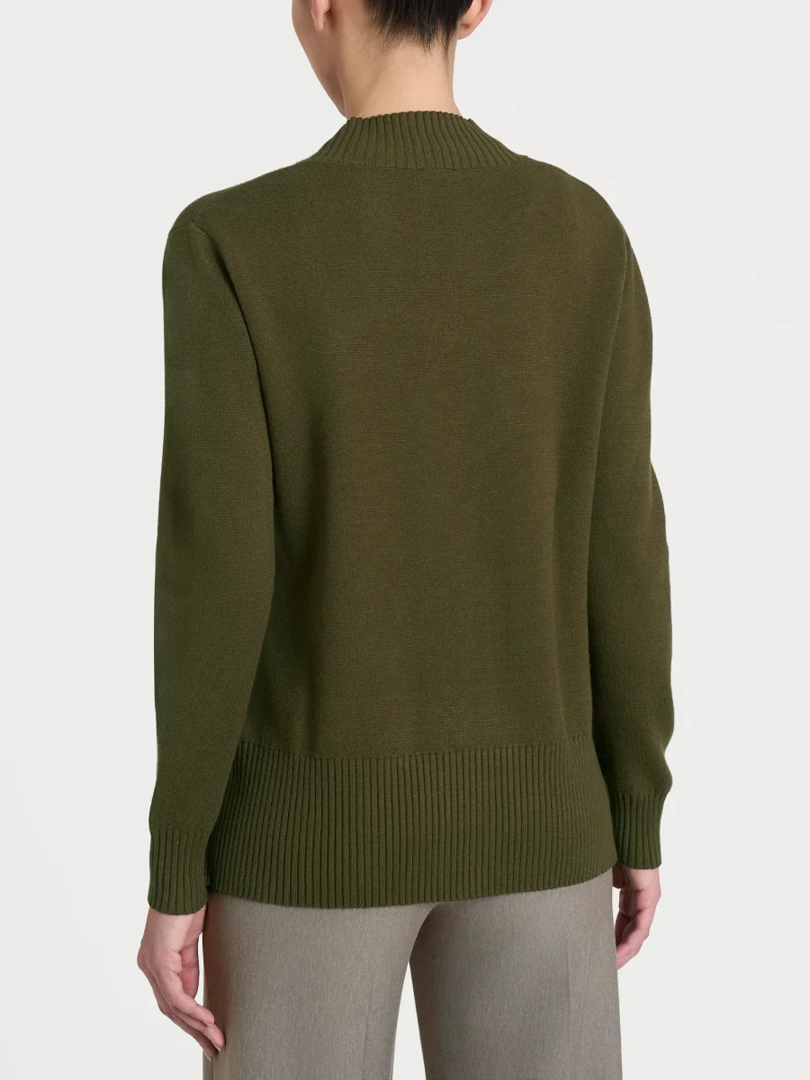 Questo modello è caratterizzato da pratiche aperture laterali e pratici polsini che richiamando le bordature in costina 3×3 definendo con eleganza il capo.