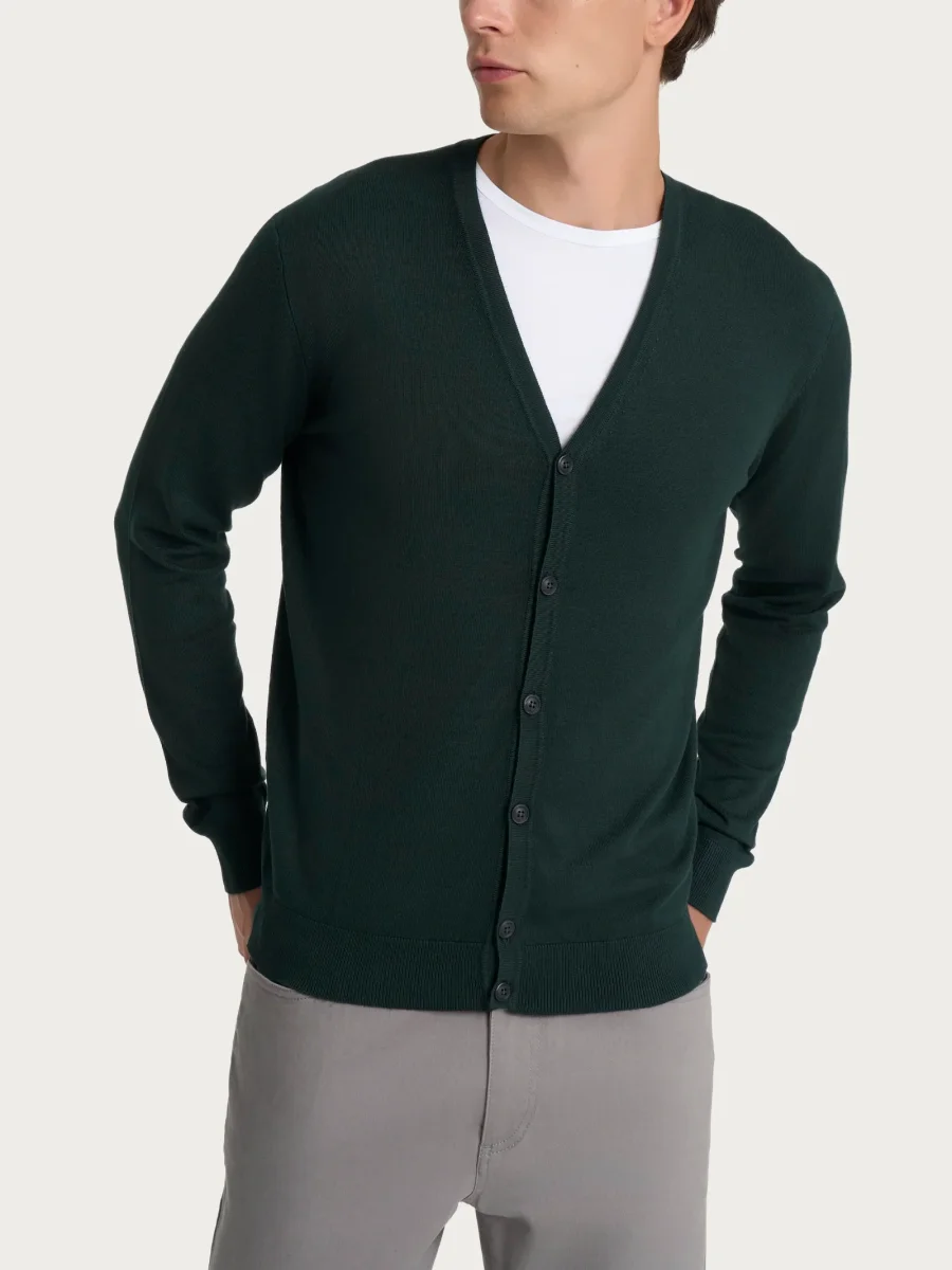 Cardigan da uomo a manica lunga in misto viscosa con finezza 12, traspirante, termoregolante e confortevole.