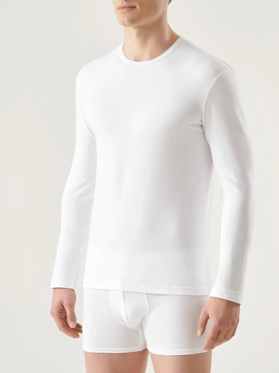 Maglietta girocollo a manica lunga della linea Comfort in cotone elasticizzato.
