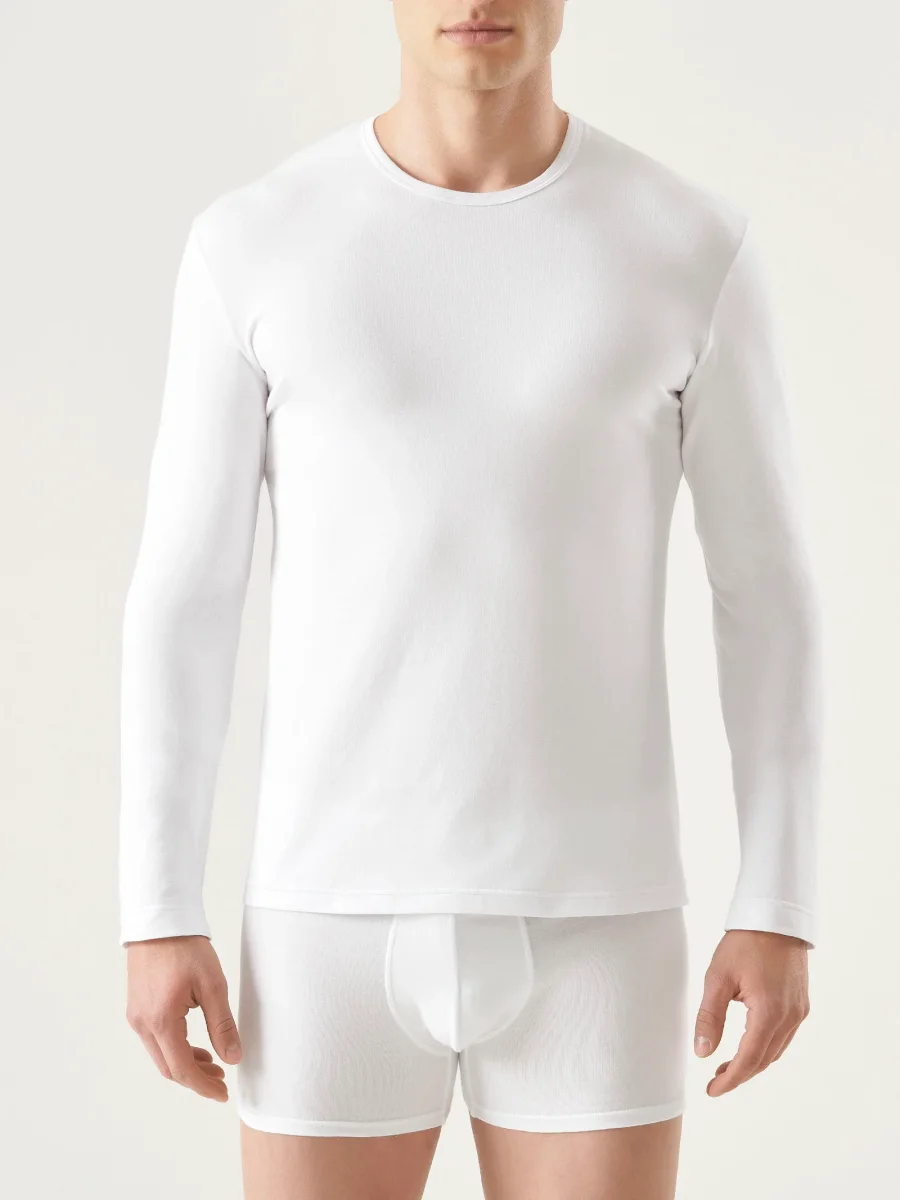 Maglietta girocollo a manica lunga della linea Comfort in cotone elasticizzato.