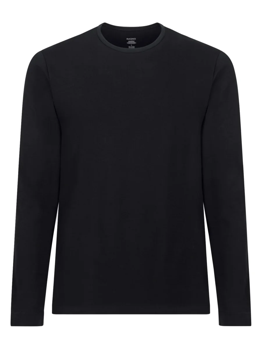 Comfort – Maglietta girocollo a manica lunga in cotone elasticizzato – Nero