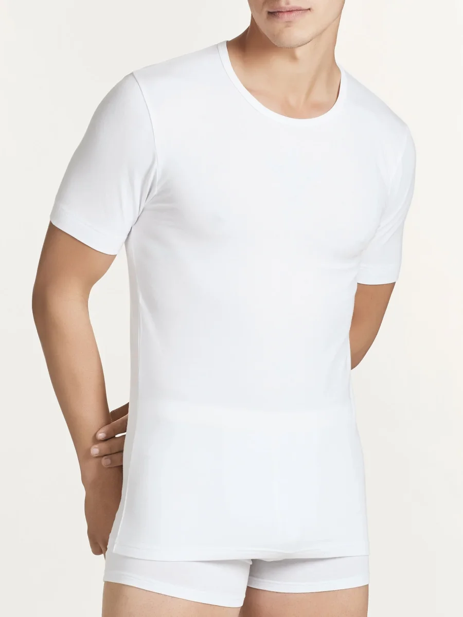 Maglietta girocollo a manica corta della linea Comfort in cotone elasticizzato.