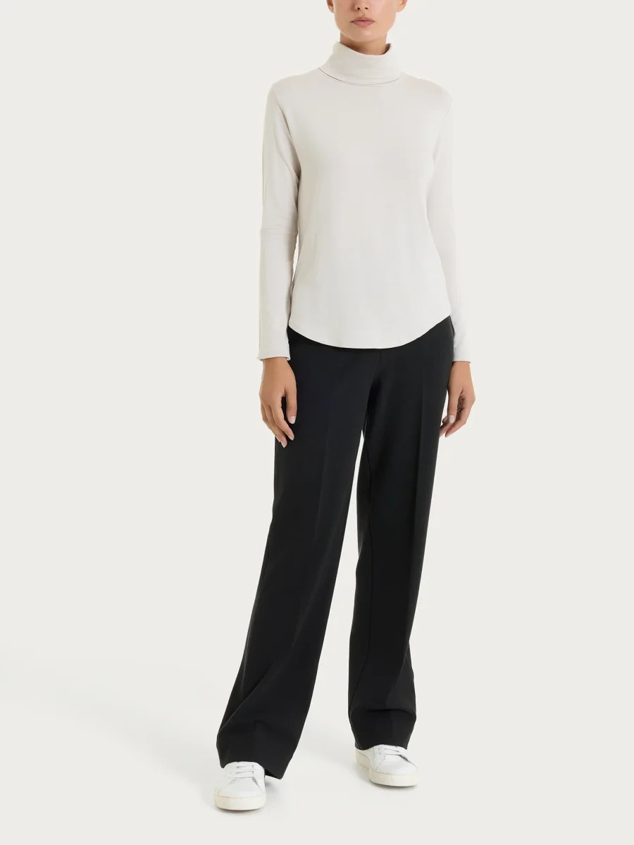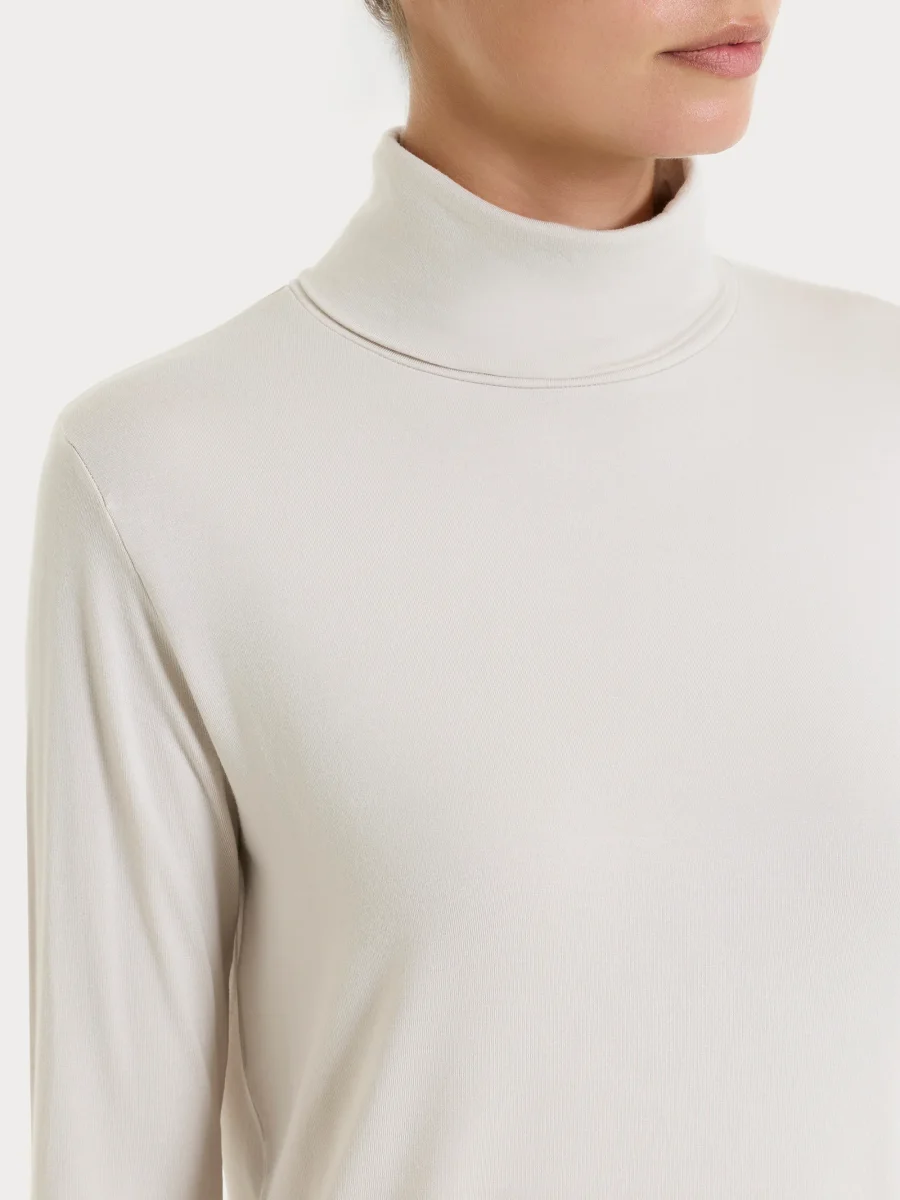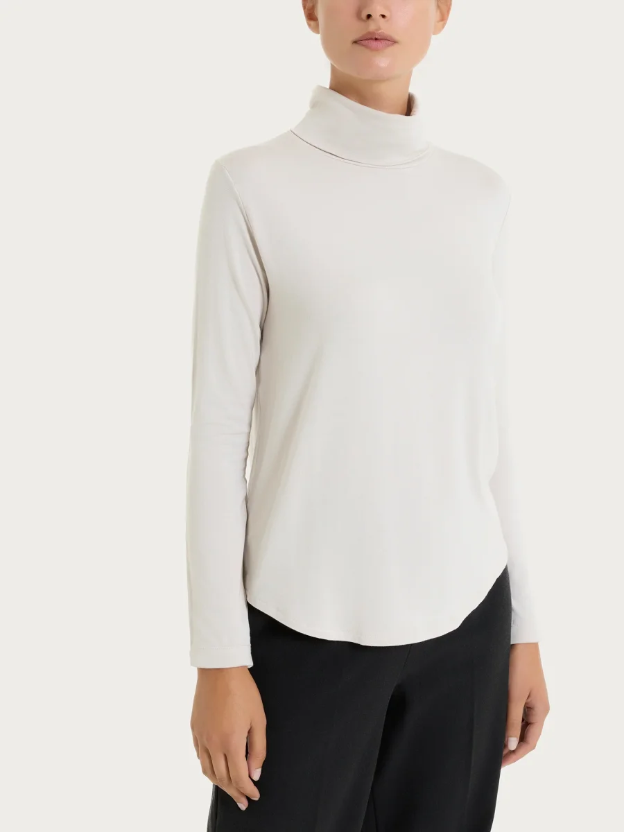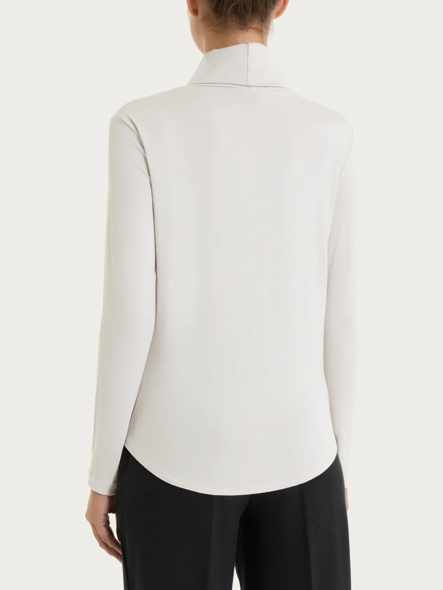 Maglietta con collo roulè morbido e manica lunga da donna.