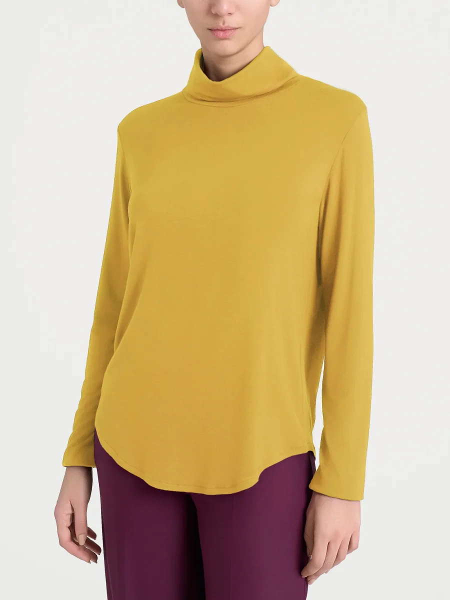 Maglietta con collo roulè morbido e manica lunga da donna.