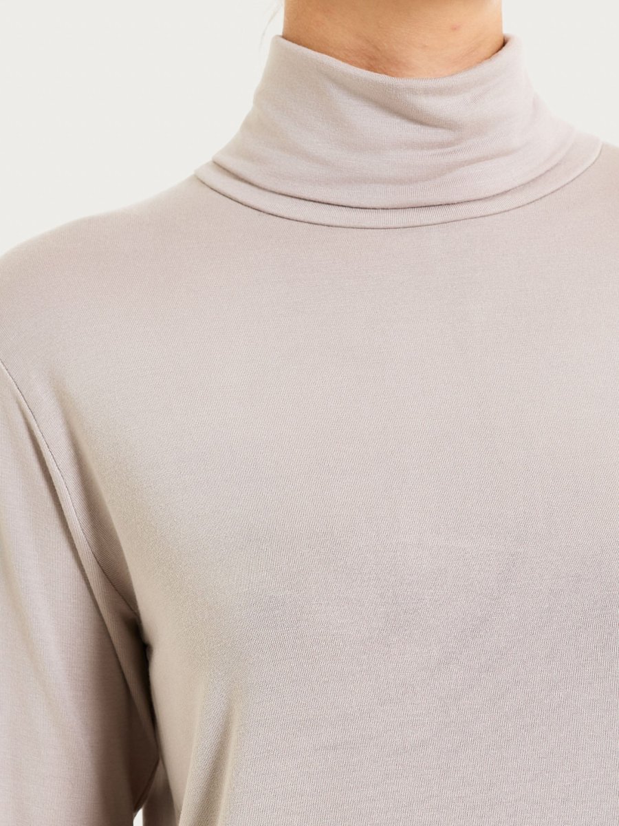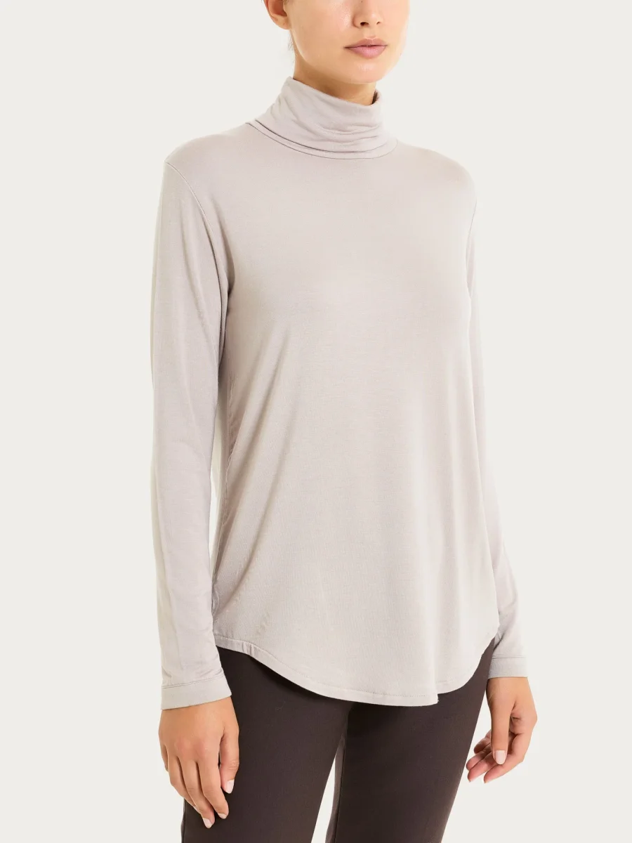 Maglietta con collo roulè morbido e manica lunga da donna.