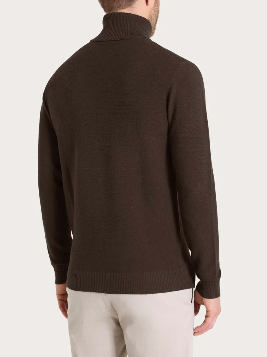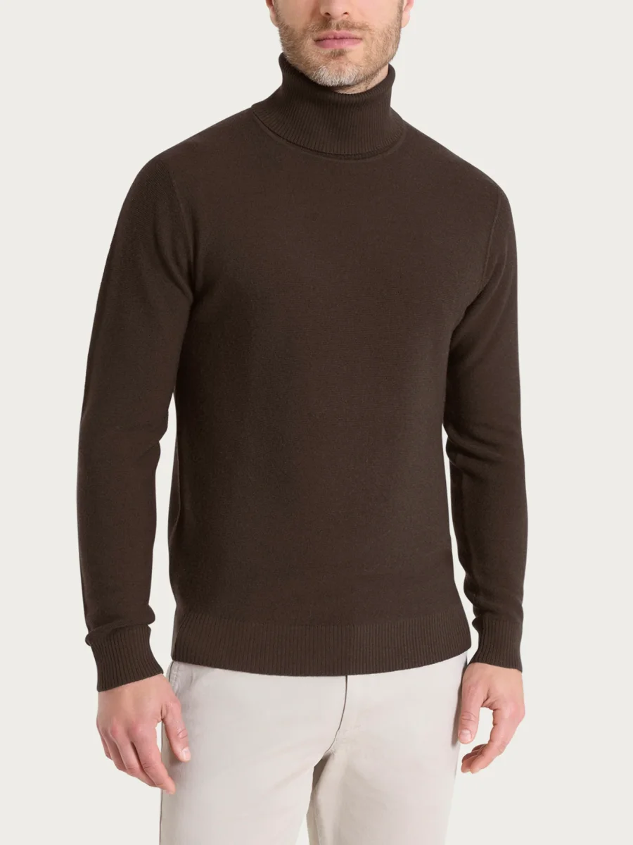 Dolcevita con collo roulè da uomo in pura lana, tessuto in finezza 12, estremamente morbido e caldo.