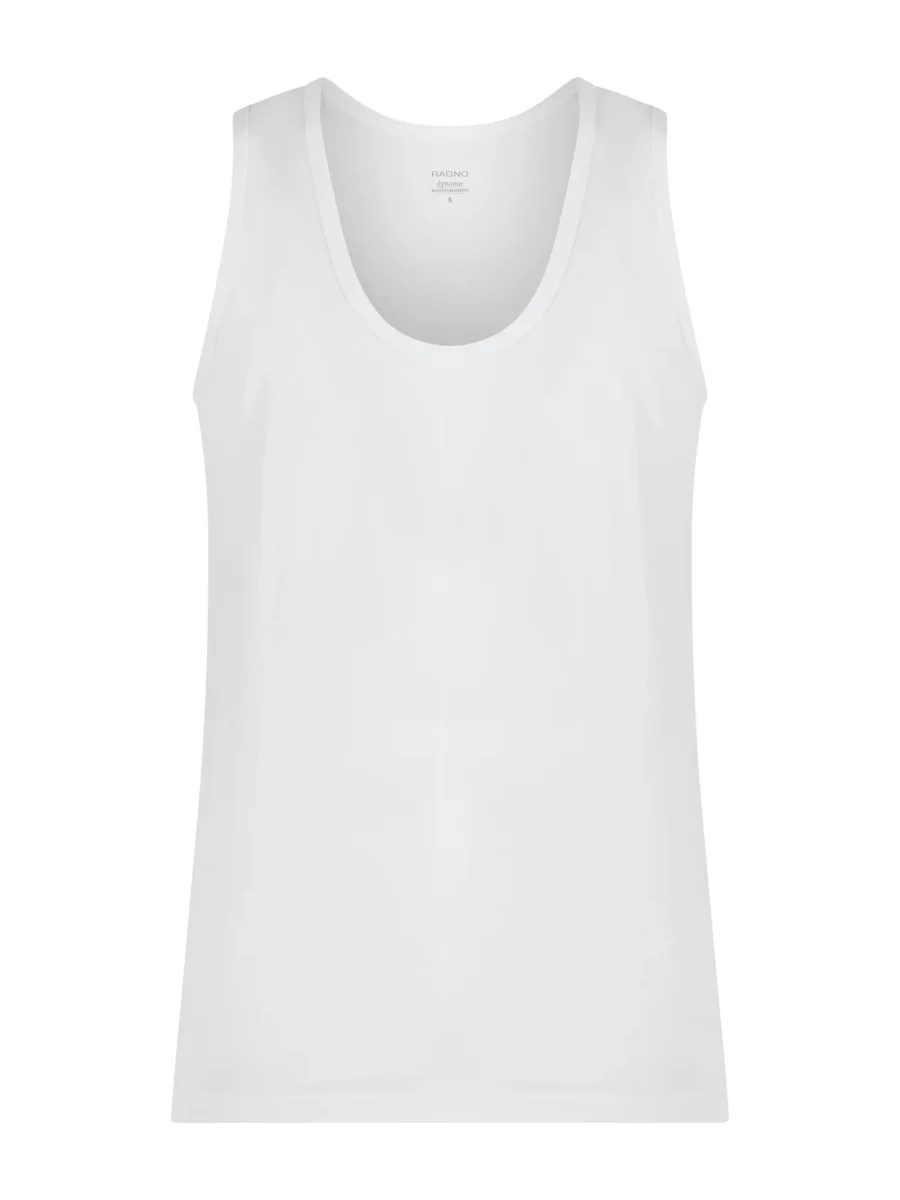 Canottiera girocollo a spalla larga in jersey di cotone elasticizzato.