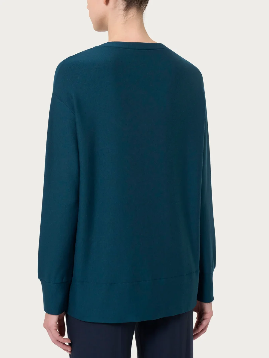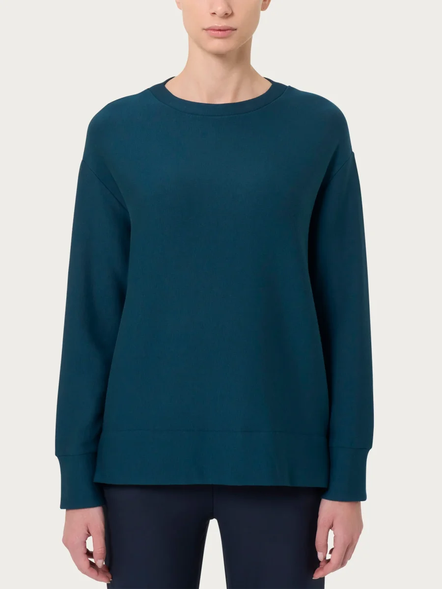 Realizzata nell’esclusivo Eco Techno Fleece, una felpa in morbida e setosa viscosa elasticizzata, confortevole e avvolgente.