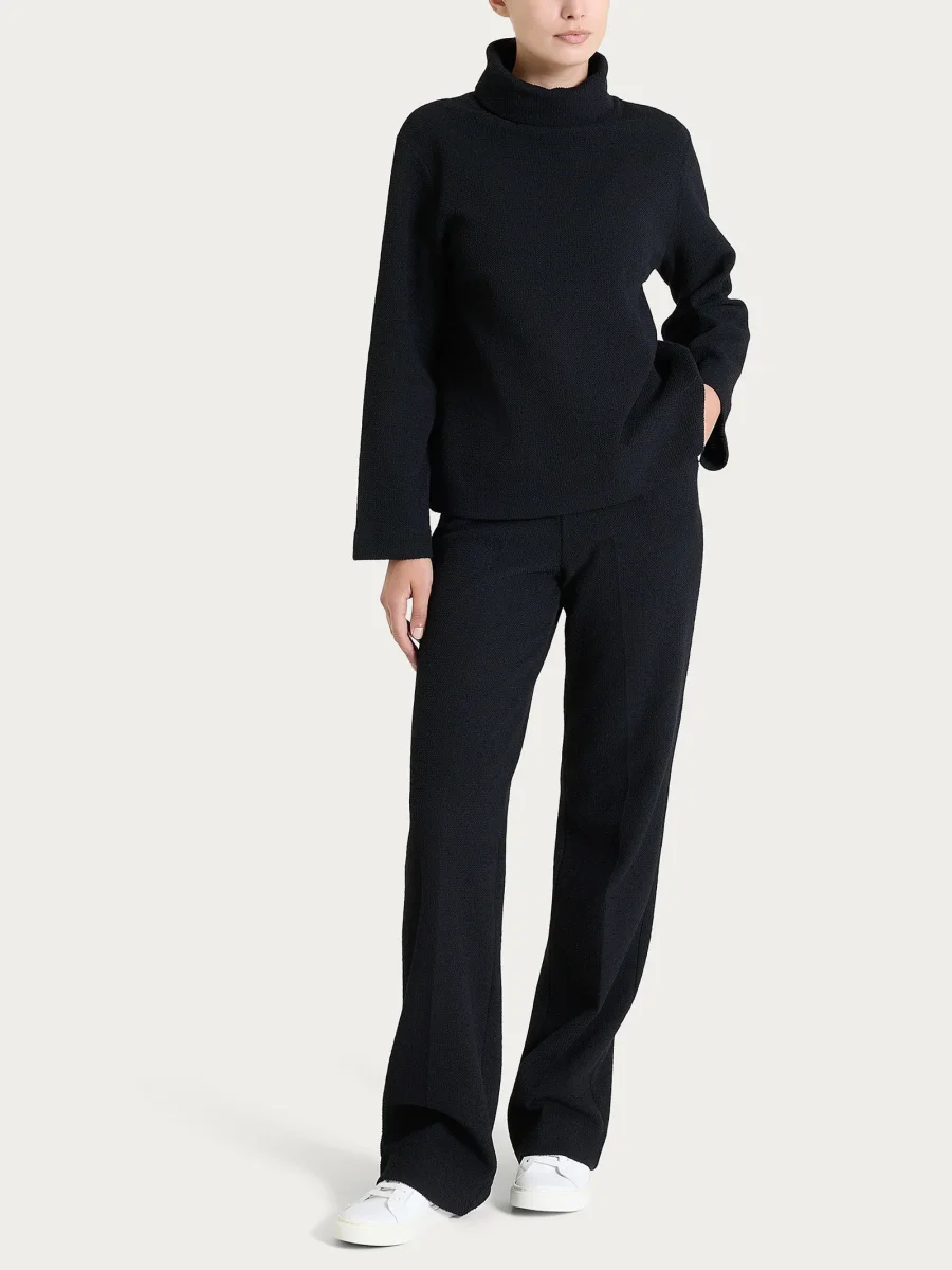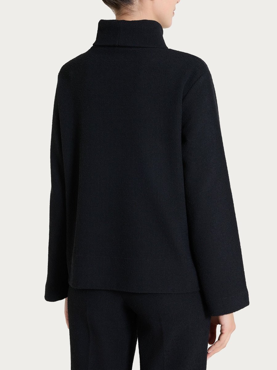 Questo modello con collo alto avvolge delicatamente la base del collo conferendo al capo un ricercato, oltre a offrire una sensazione di comfort e morbidezza sulla pelle, proteggendo da freddo.