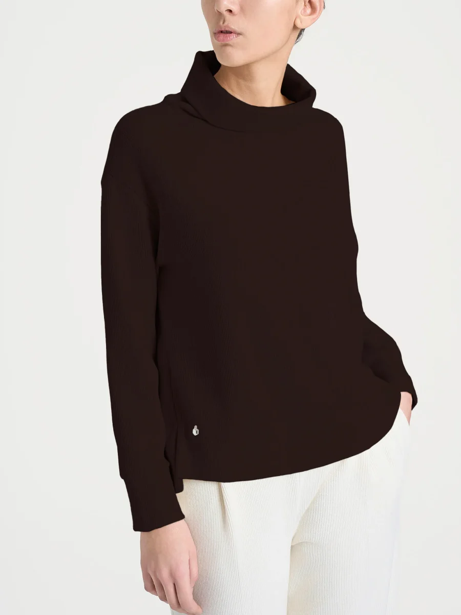 Questo modello con collo alto avvolge delicatamente la base del collo conferendo al capo un aspetto pulito e minimalista, oltre a offrire una sensazione di comfort e morbidezza sulla pelle, proteggendo da freddo.