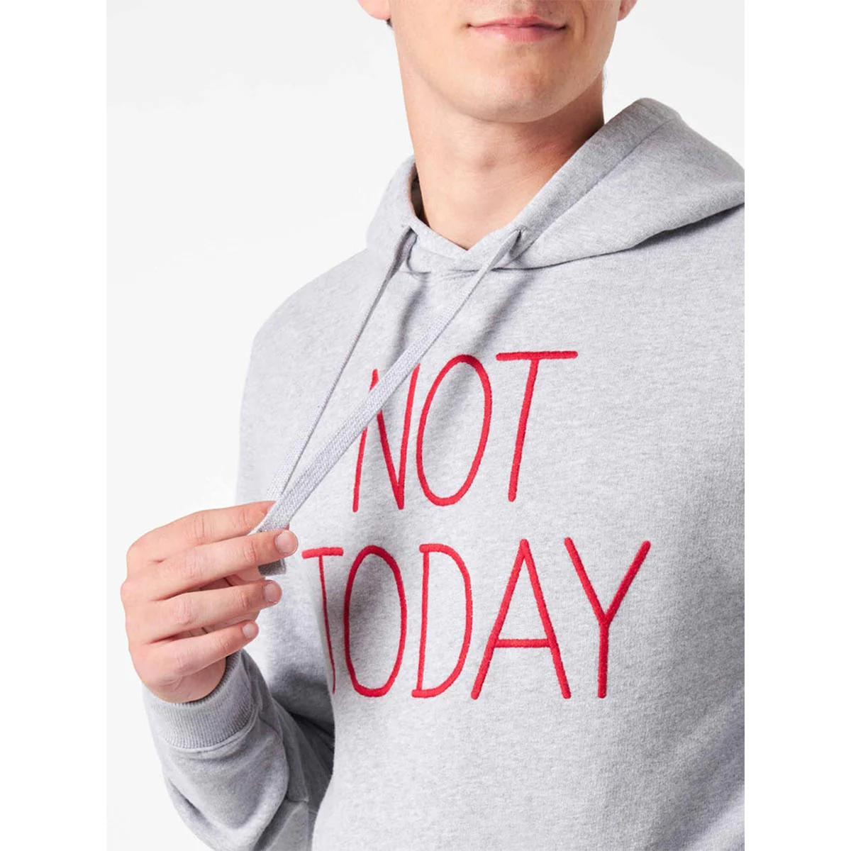 Felpa grigia da uomo con cappuccioricamo Not todayVestibilità regolareFedele alle dimensioniTasche a marsupioPolsini, collo e fondo a costine