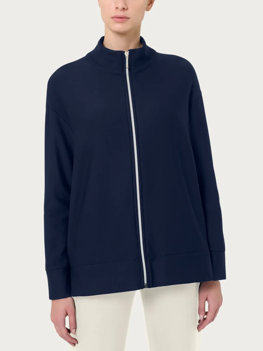 Felpa con zip in Eco techno Fleece – Bleu