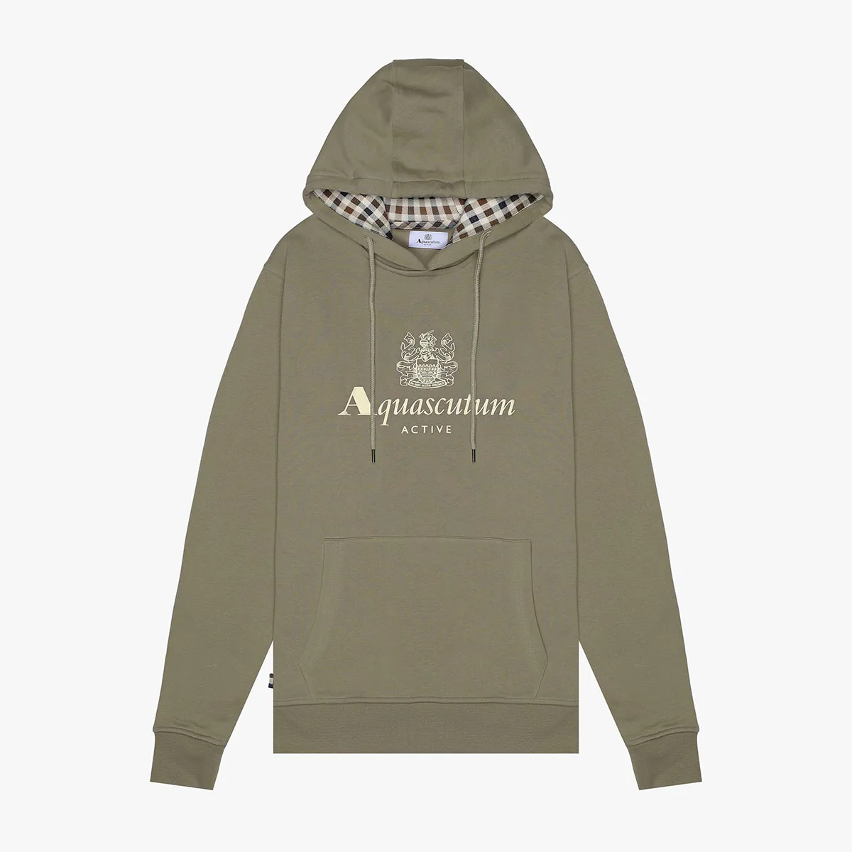 Realizzata in felpa garzata di cotone 100%, questa felpa con cappuccio presenta una stampa centrale con logo Aquascutum Active in formato maxi. Il cappuccio è foderato in popeline di cotone con motivo Club Check,