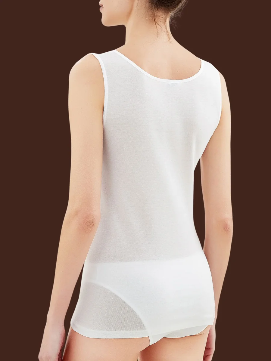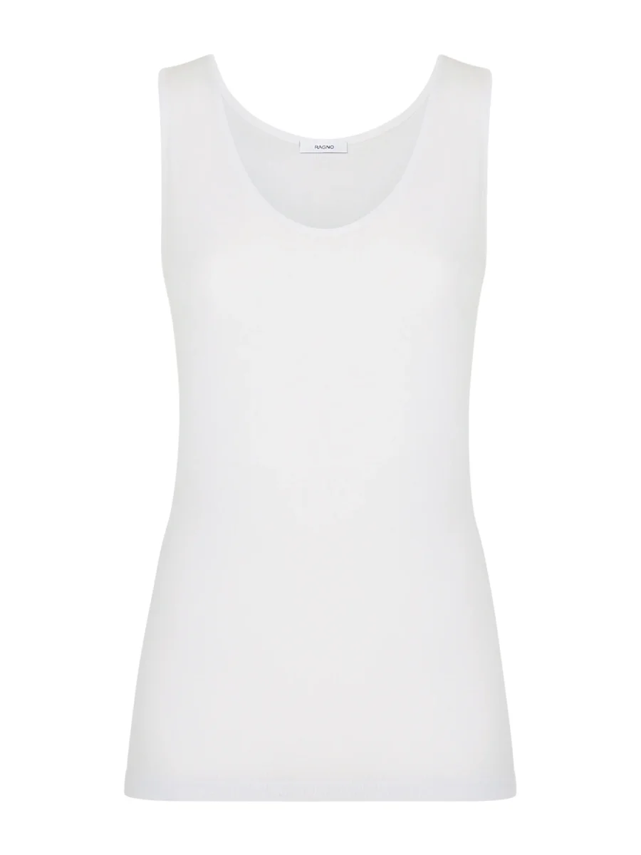 Canottiera girocollo con spalla larga in maglia unita di pregiato cotone Filo di Scozia ipoallergenico.