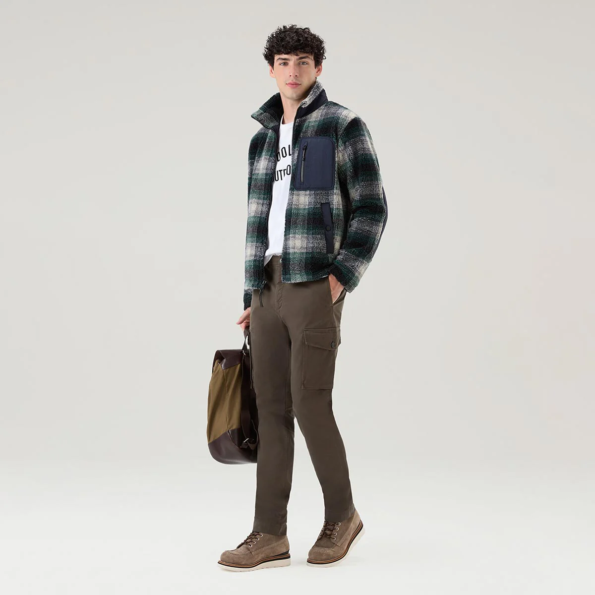 Il modello è alto 190 cm e indossa la taglia L.