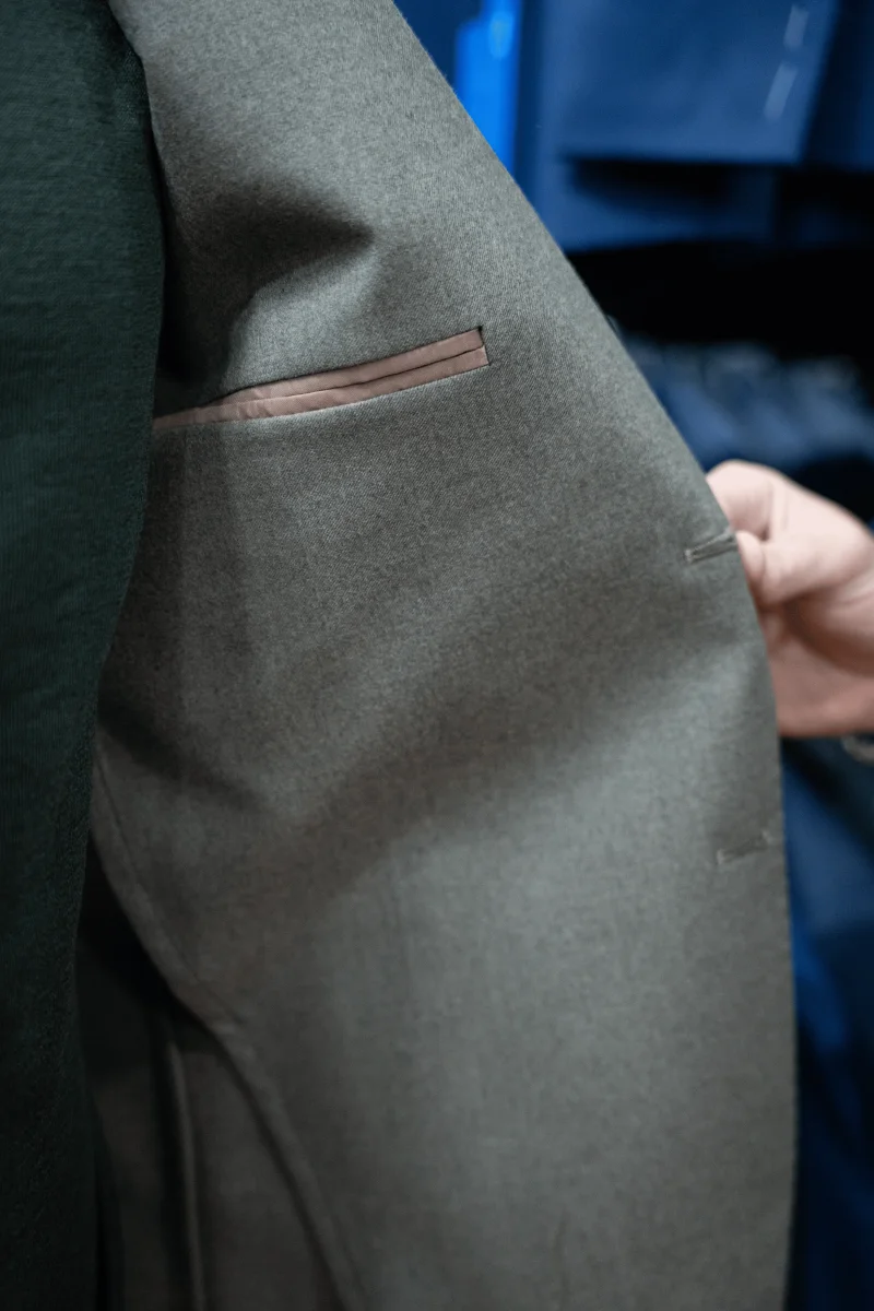 SPALLA NAPOLI, TOTALMENTE SFODERATA, UN’ASOLA ALLE MANICHE.