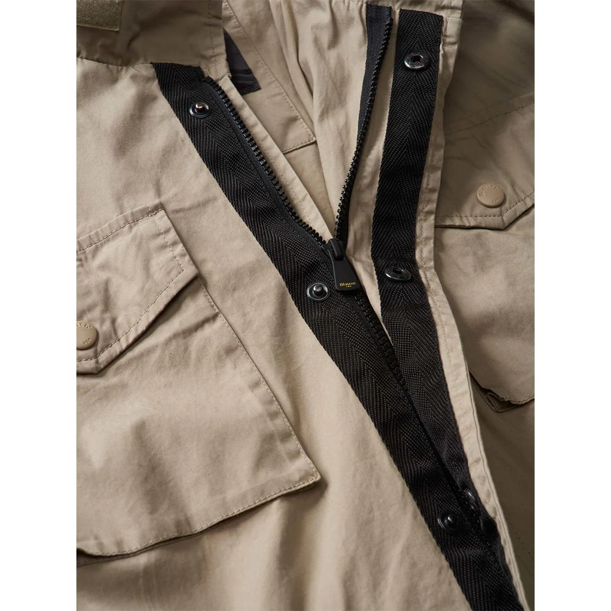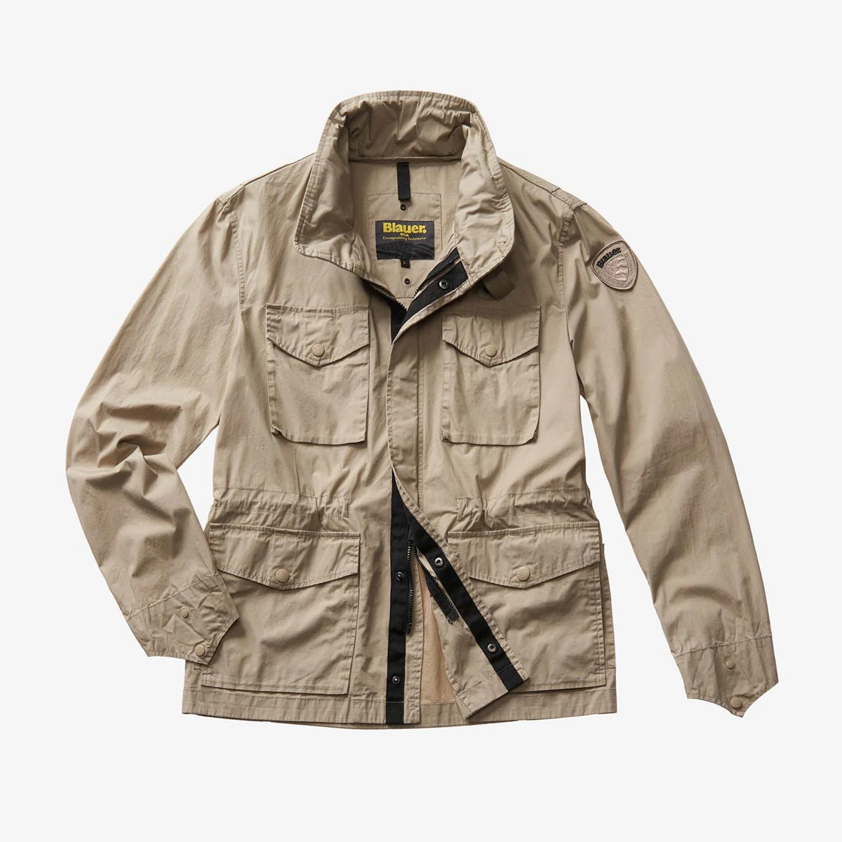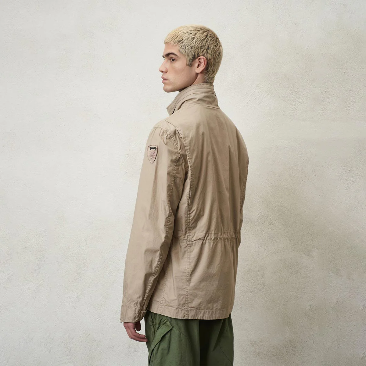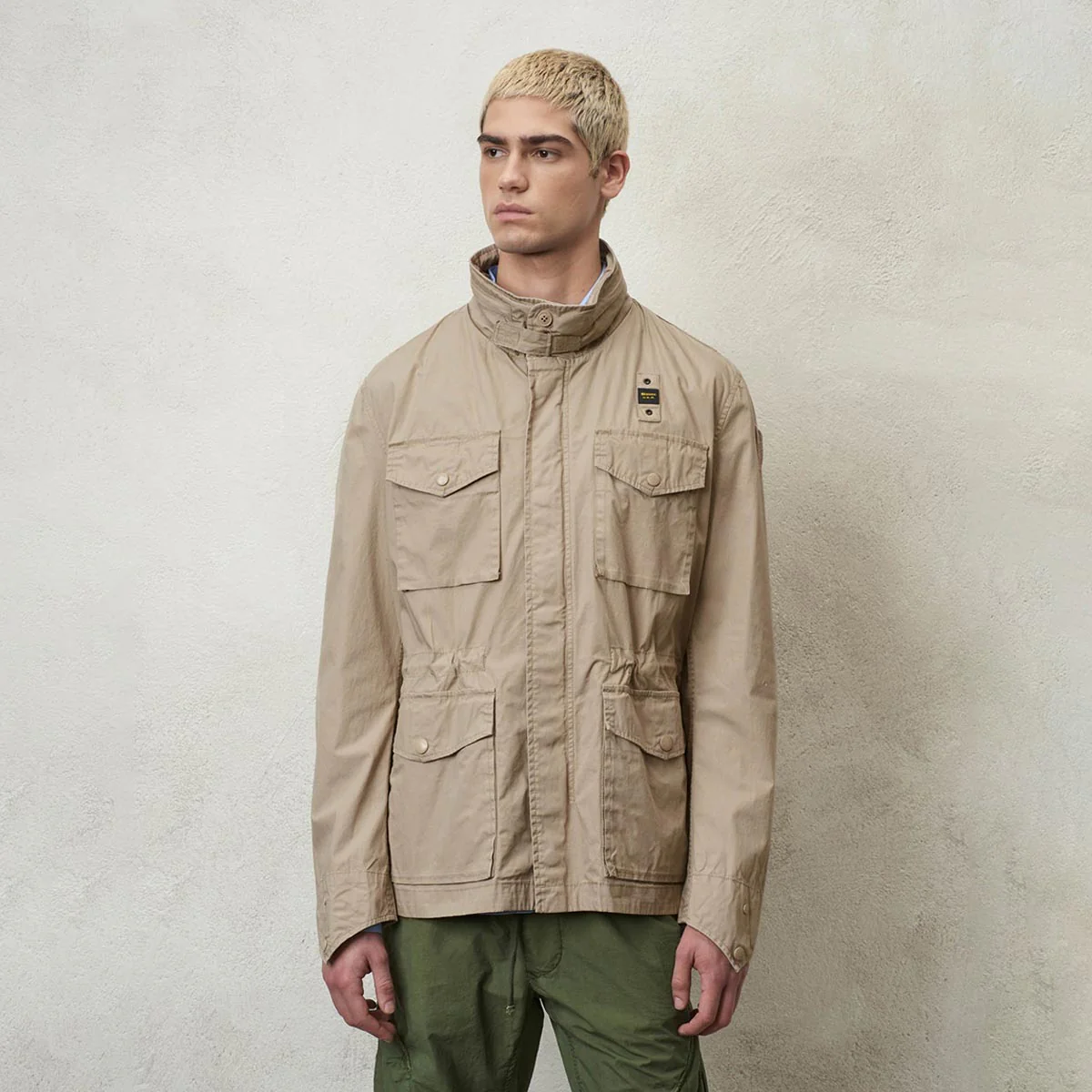 Caratteristico passante Blauer cucito sul petto a sinistra e patch scudo Blauer sulla manica sinistra.