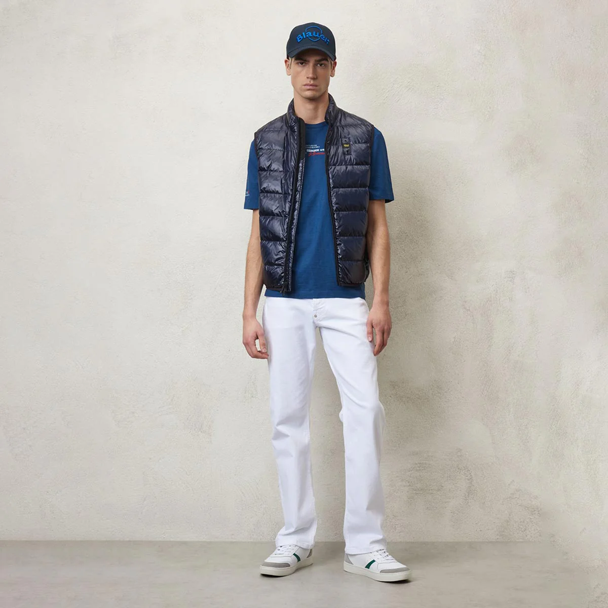 Caratteristico passante Blauer cucito sul petto a sinistra.