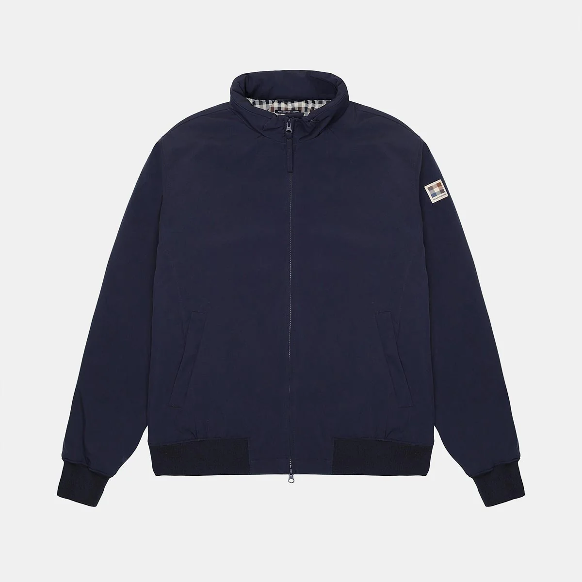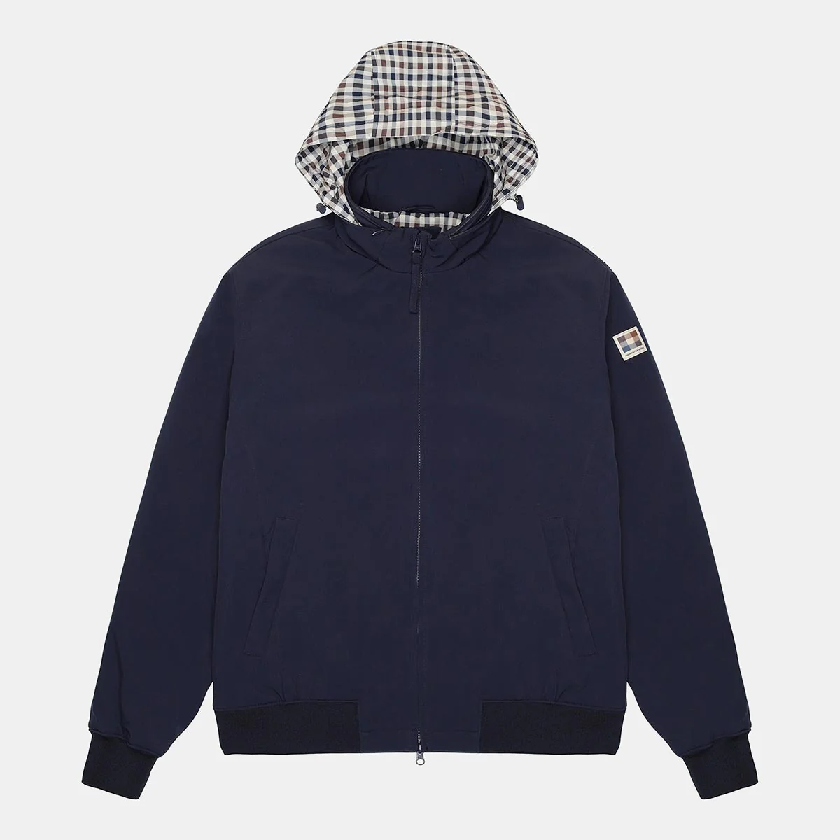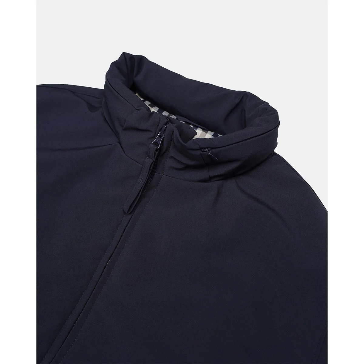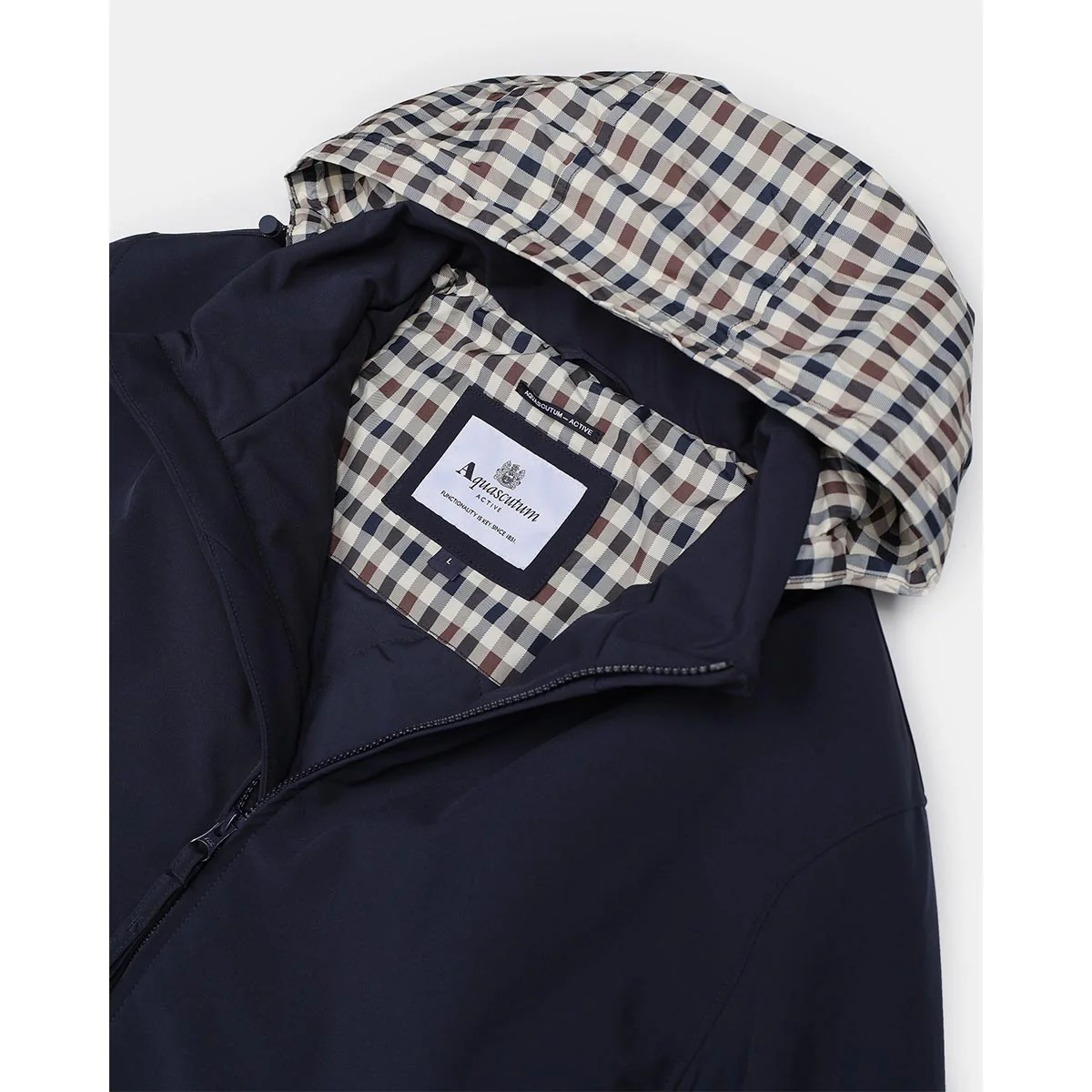 - Cappuccio packable in tessuto Club Check all’interno del collo mockneck