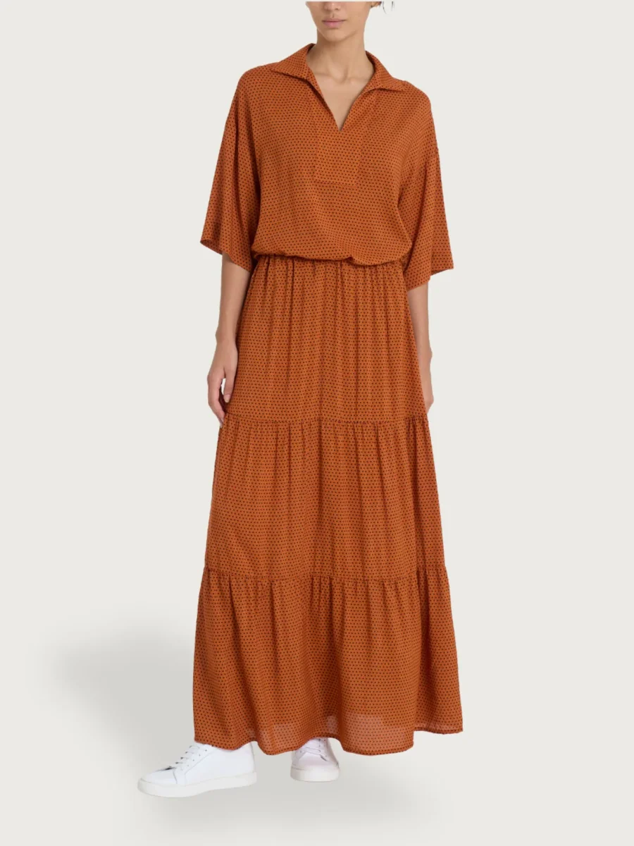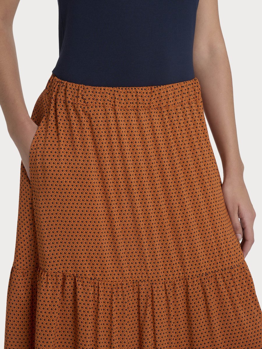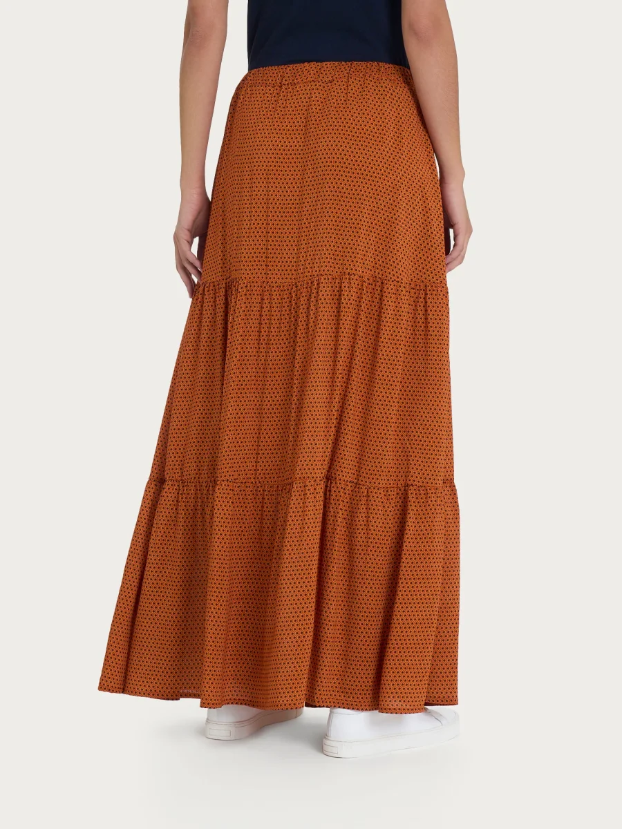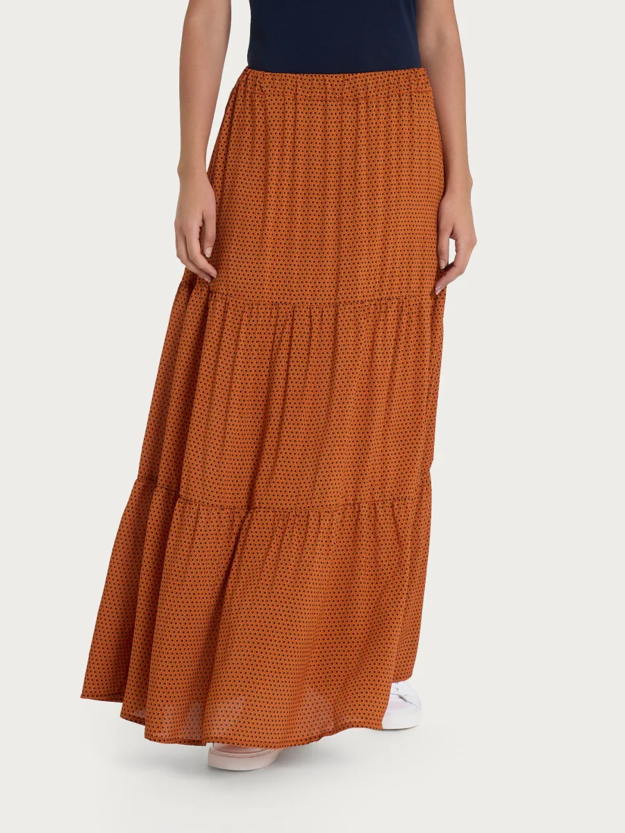 Gonna lunga a balze da donna realizzata in morbida e fluida viscosa.