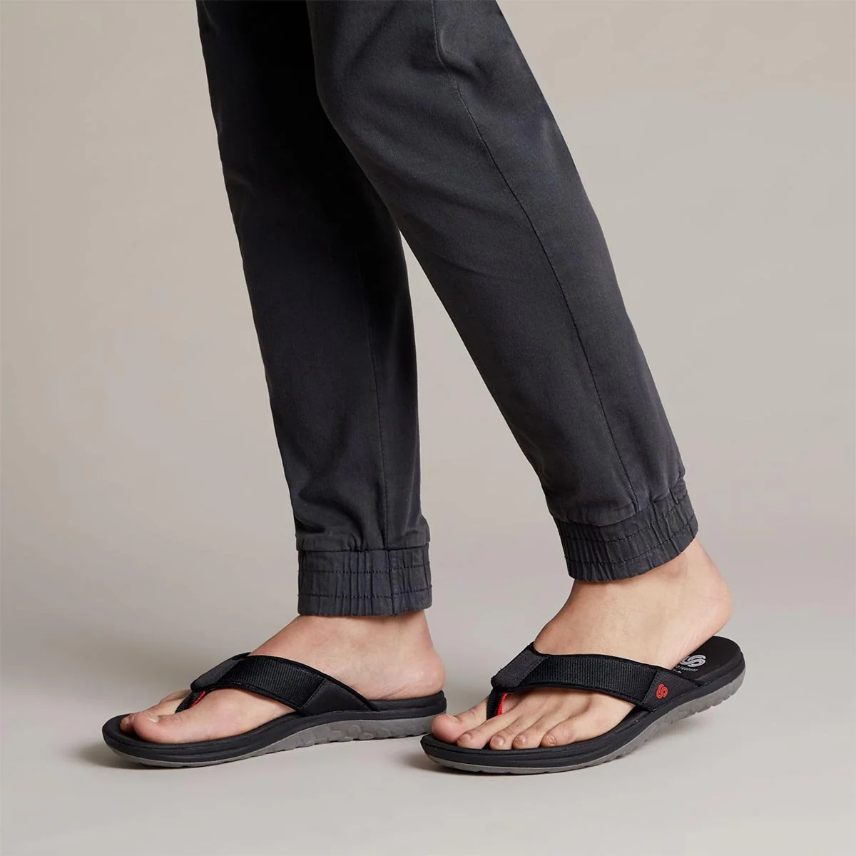Sandalo caratterizzati da una tomaia in tessuto flessibile e da una suola leggera in EVA ventilata.