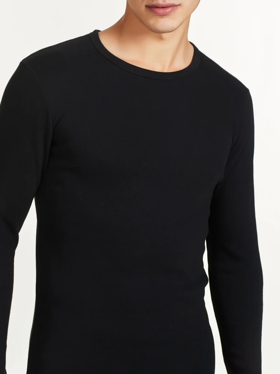 Maglietta girocollo a manica lunga della linea Interlock in tessuto interlock di puro cotone.