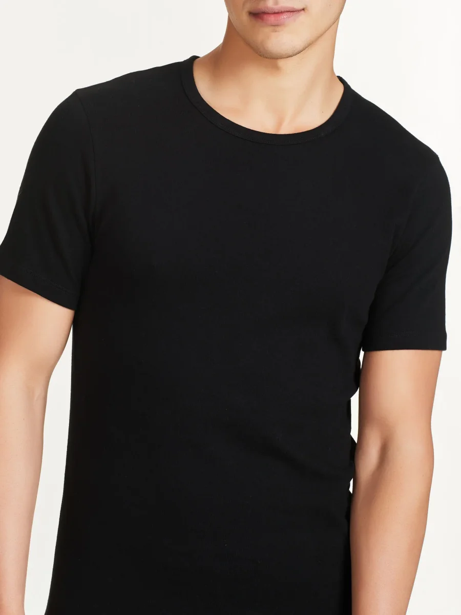 Maglietta girocollo a manica corta della linea Interlock in tessuto interlock di puro cotone.
