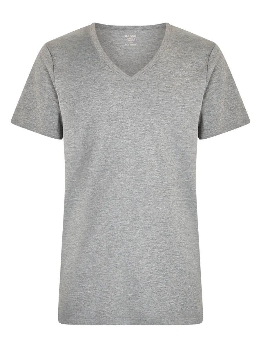 Maglietta con scollo a V a manica corta della linea Interlock in tessuto interlock di cotone.