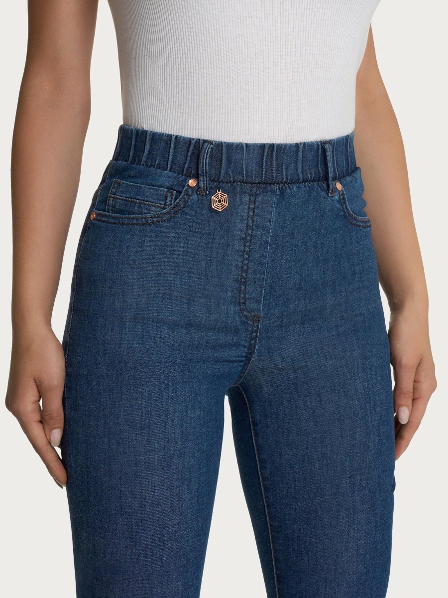 La vestibilità è skinny, la linea aderente segue con precisione le forme delle gambe, garantendo una vestibilità impeccabile e valorizzando la figura con una dose di femminilità e stile.