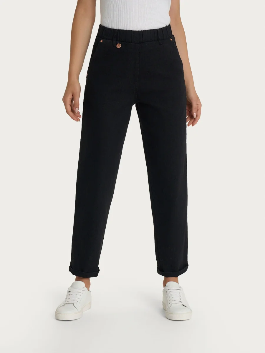 Questo modello è costruito con vita elasticizzata ma con i passanti per la cintura per permetterti di aggiungere quel tocco di stile personale in più, con comode tasche laterali.
