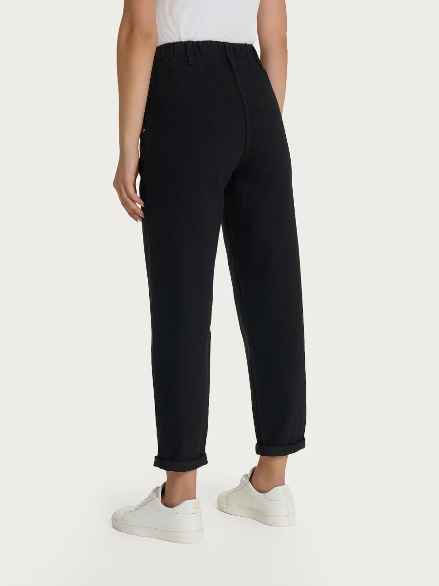 Jeans a carota da donna con vestibilità tapered, la gamba leggermente ampia si stringe verso la caviglia.