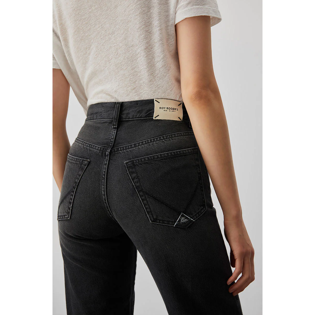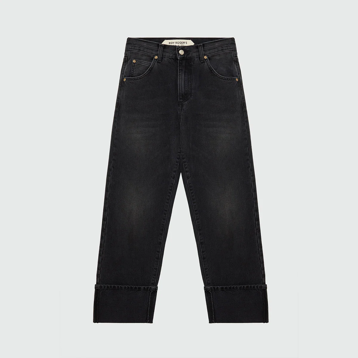 Jeans classic in denim con lavaggio Enzime wash. Vita alta con passanti e label Old Glory applicata sul retro. Chiusura con bottone logato e zip. Due tasche sul fronte e due tasche sul retro con label Roy Roger’s applicata. Macro reverse sul fondo. Straight fit alla caviglia.