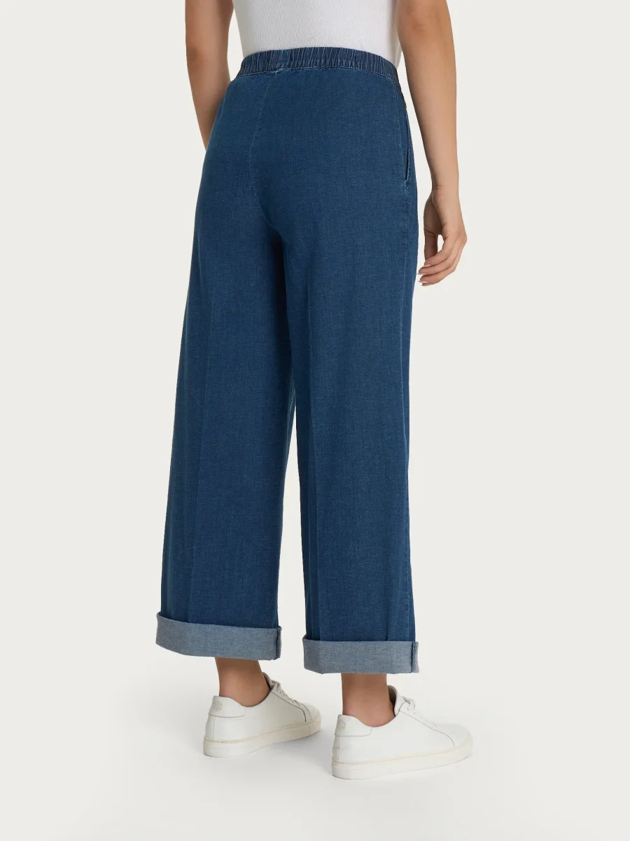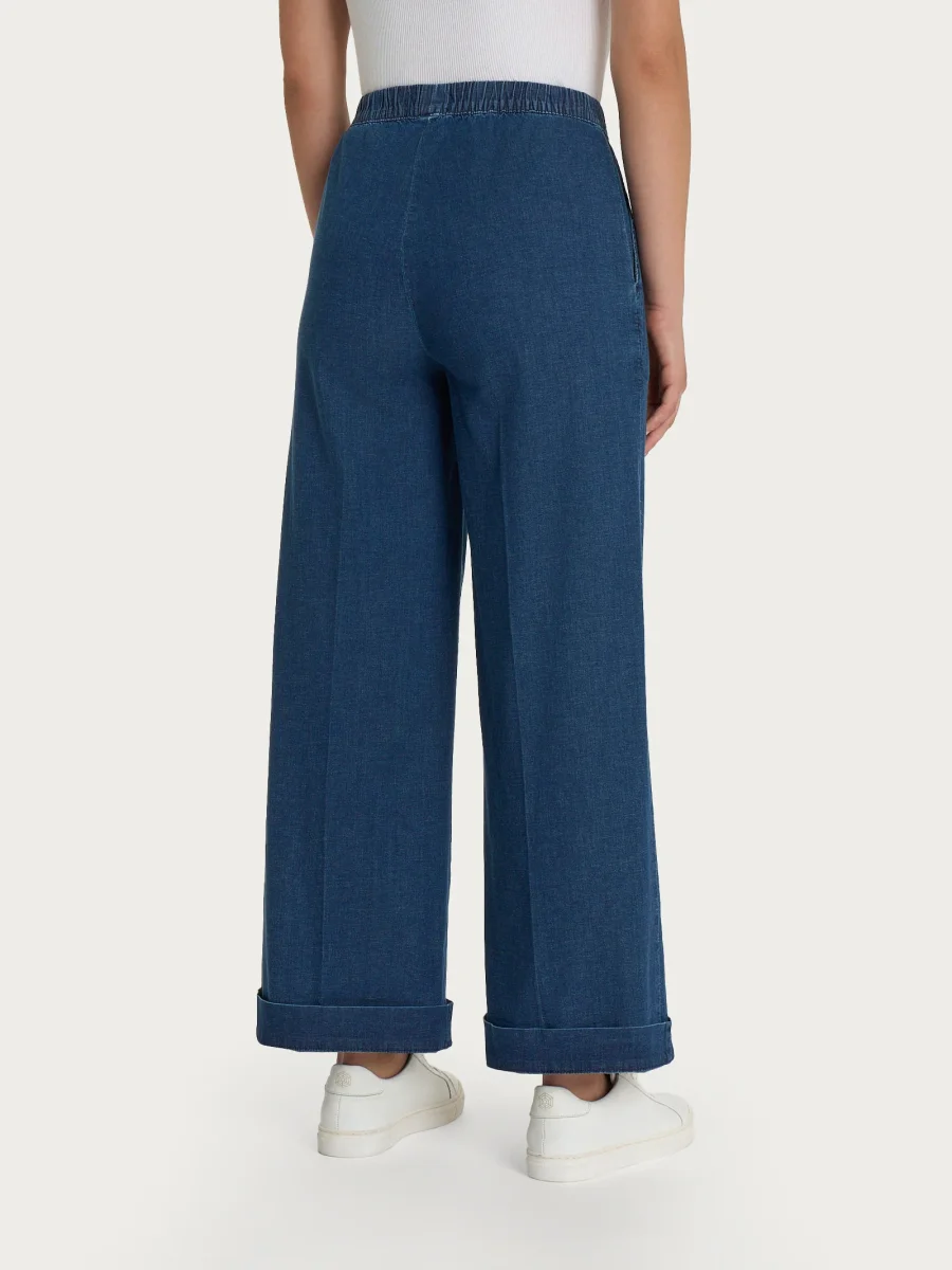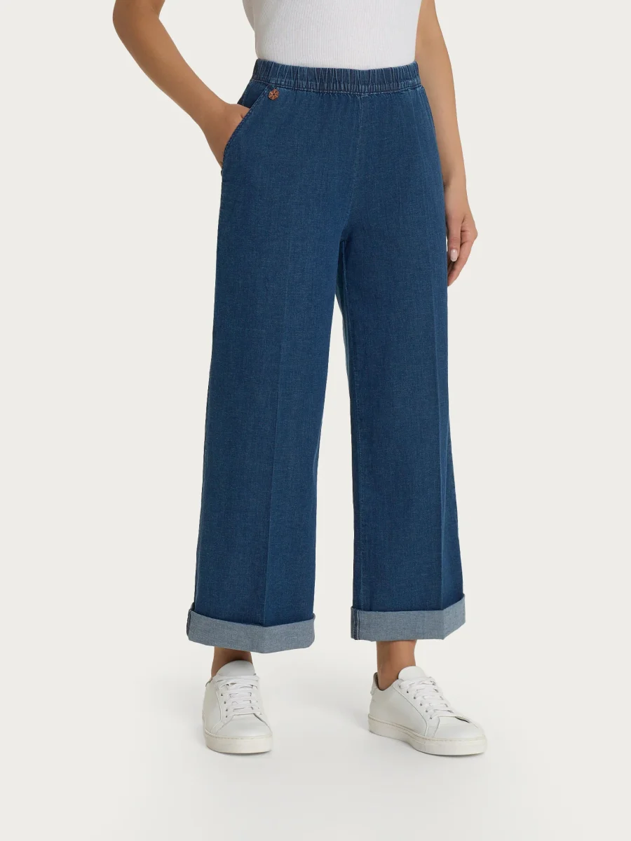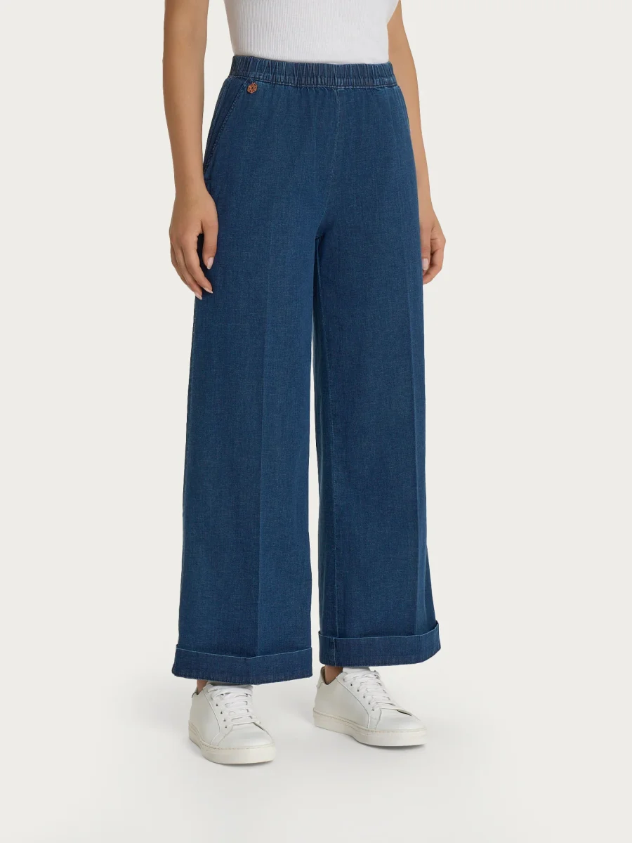 La lunghezza cropped aggiunge un tocco di originalità, mentre la possibilità di regolare il risvolto offre una personalizzazione del look.