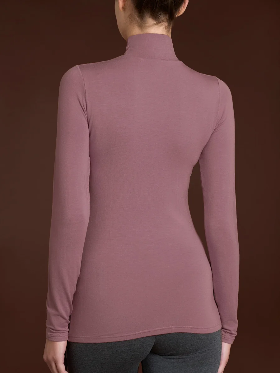 Maglia con collo lupetto e manica lunga da donna in eco viscosa, una delicata viscosa elasticizzata calda e morbida.