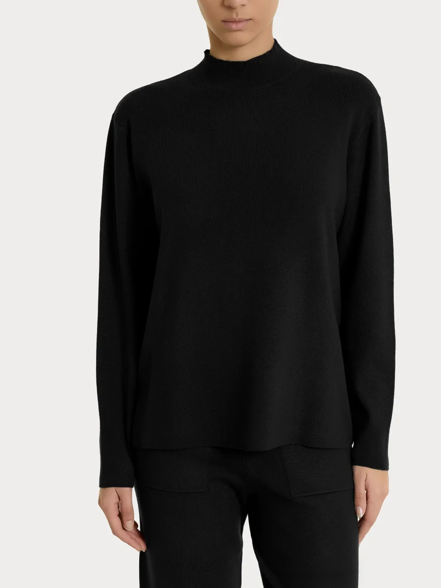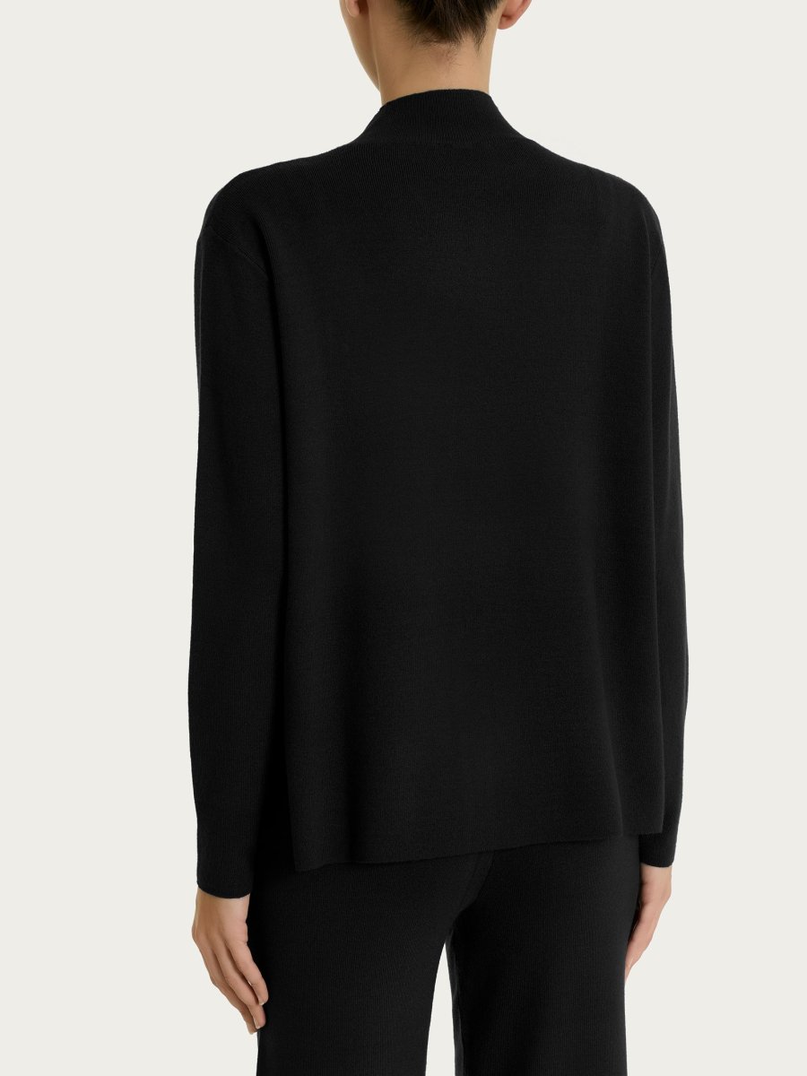 Maglia con collo lupetto a vulcano da donna in maglia unita di finezza 12.