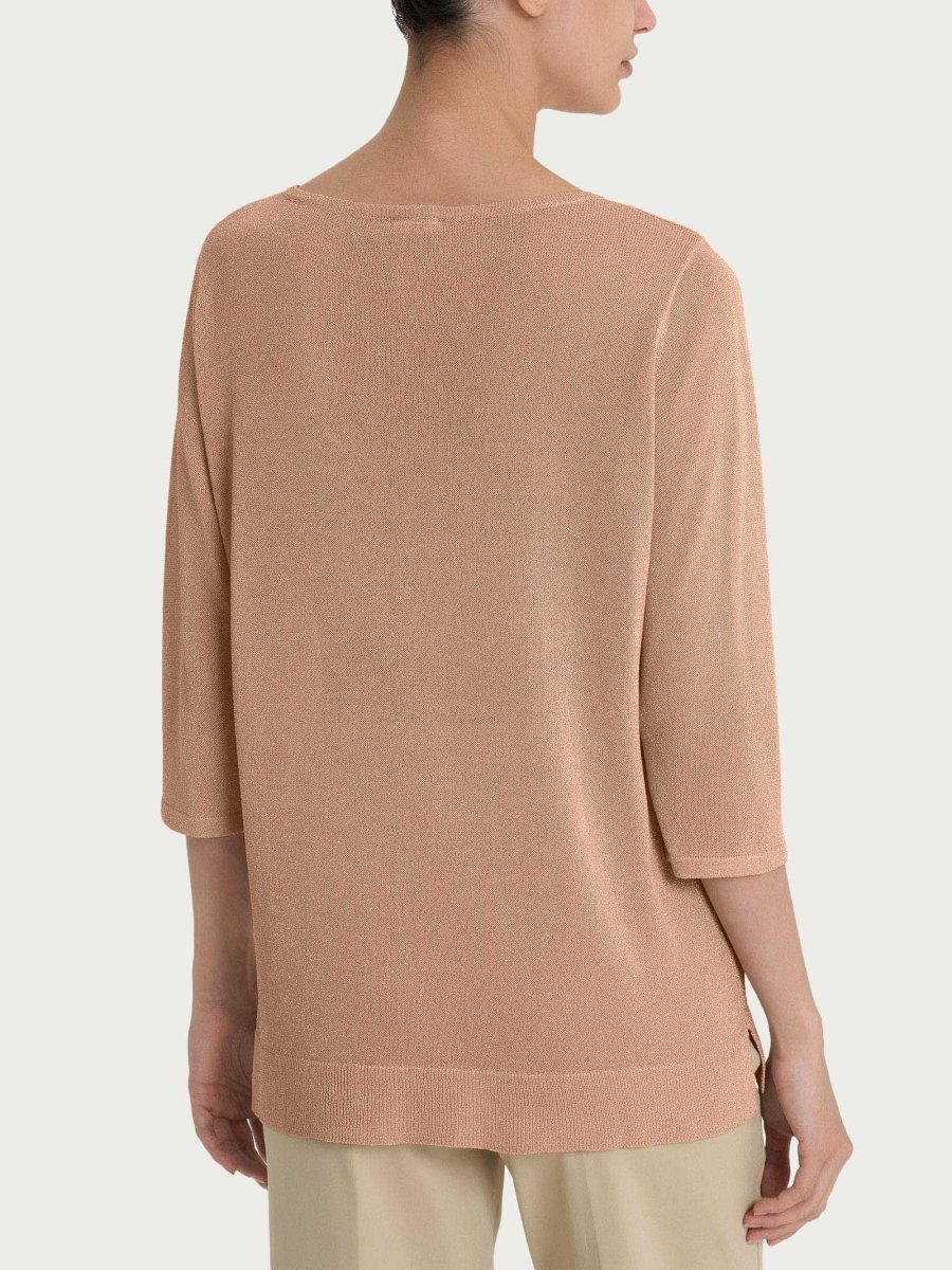 Maglia con manica 3/4 in Crêpe Lurex – Warm Taupe
