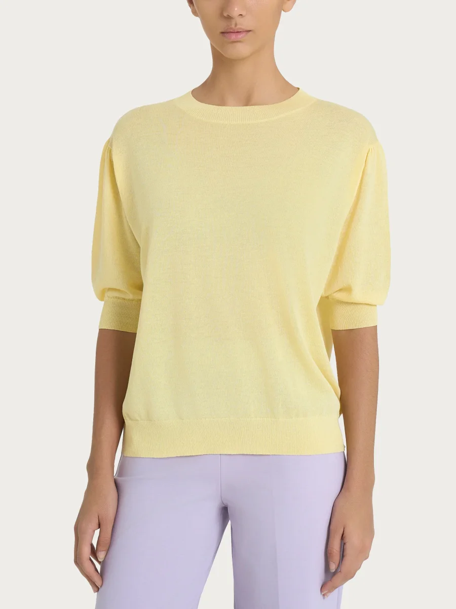Maglia con manica a palloncino in Crêpe – Pale Banana