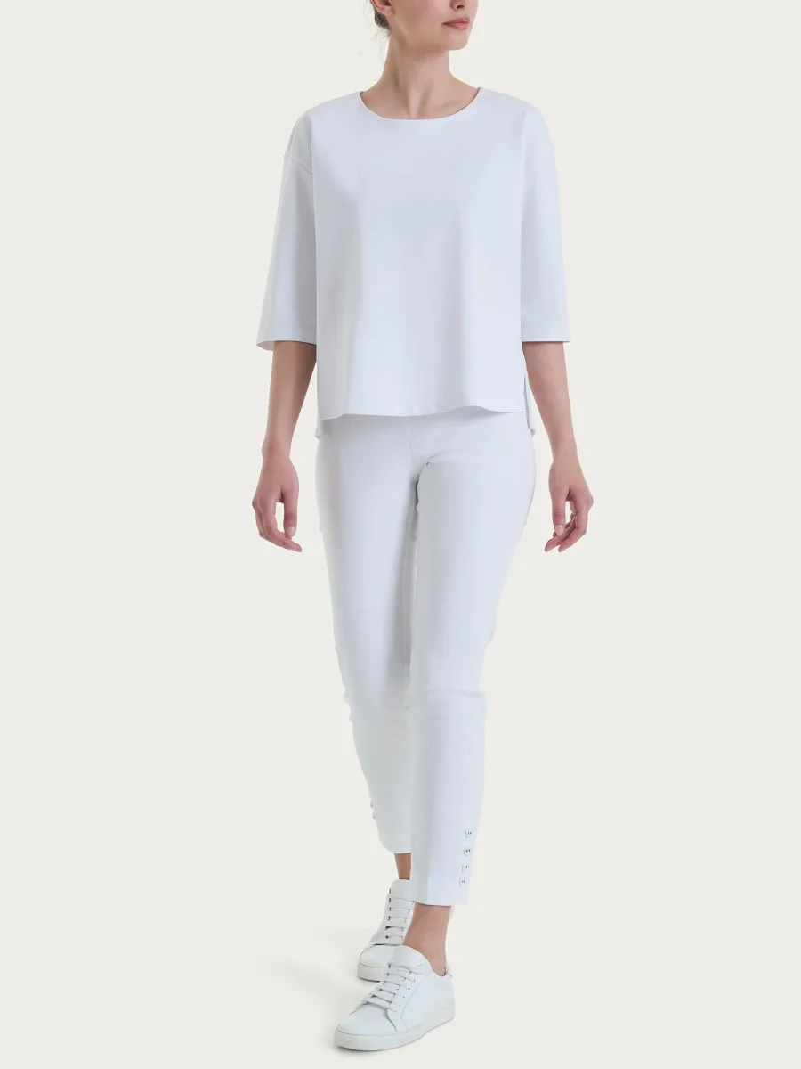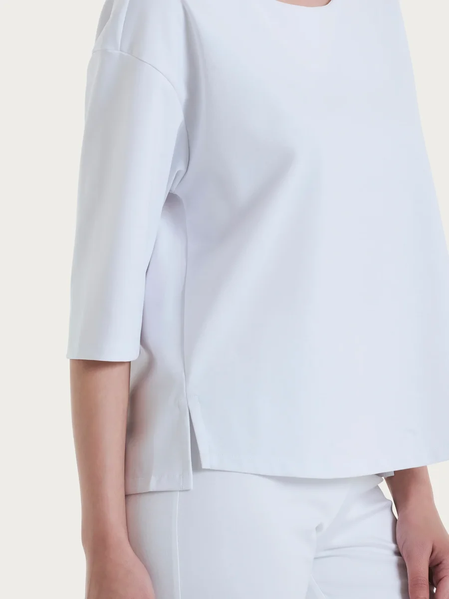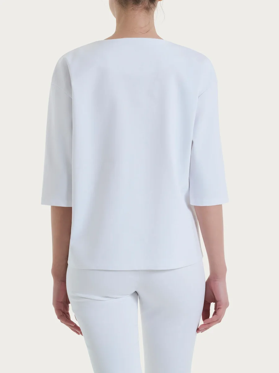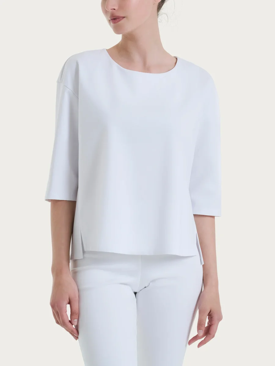 Maglia corta girocollo da donna con manica 3/4 in Compact Light.