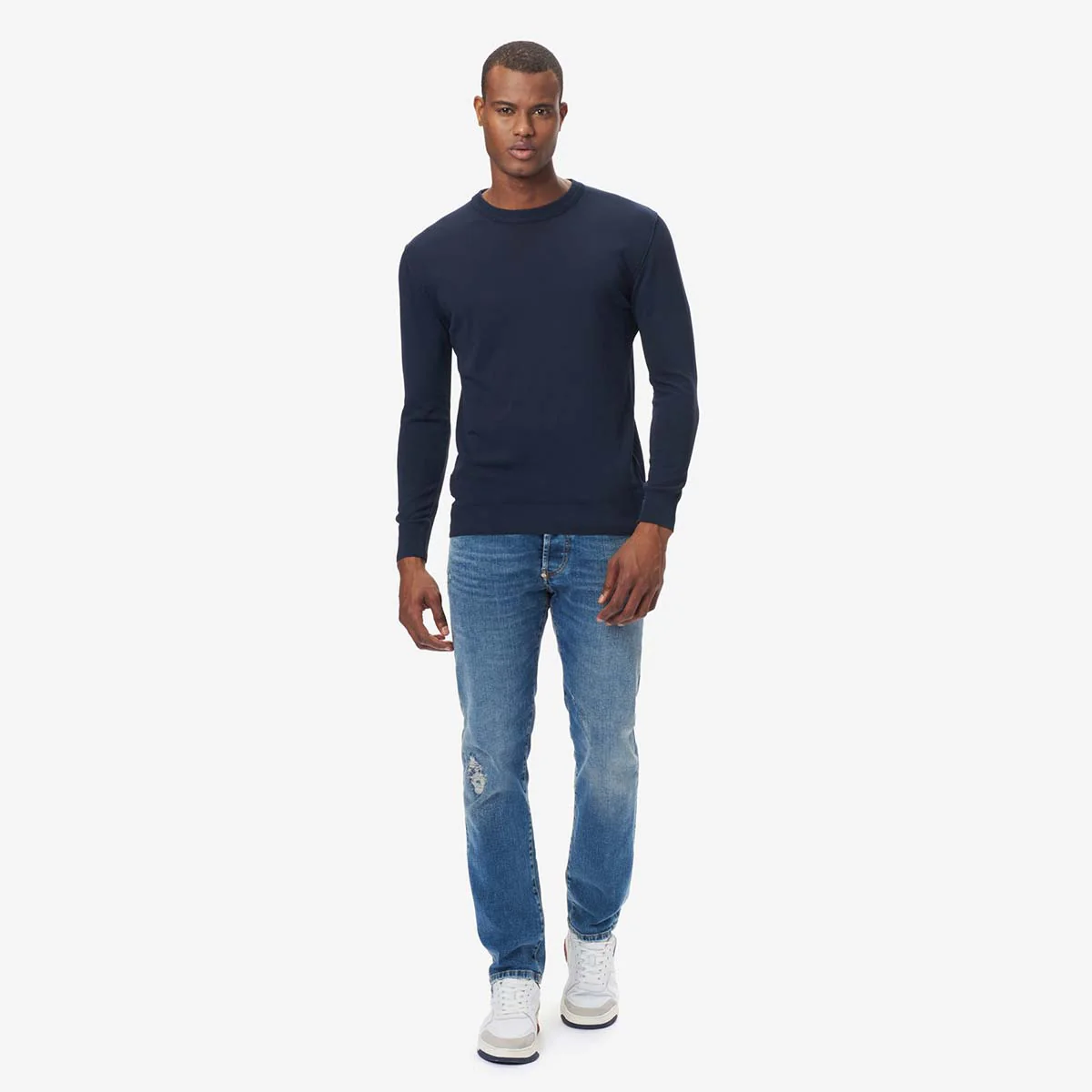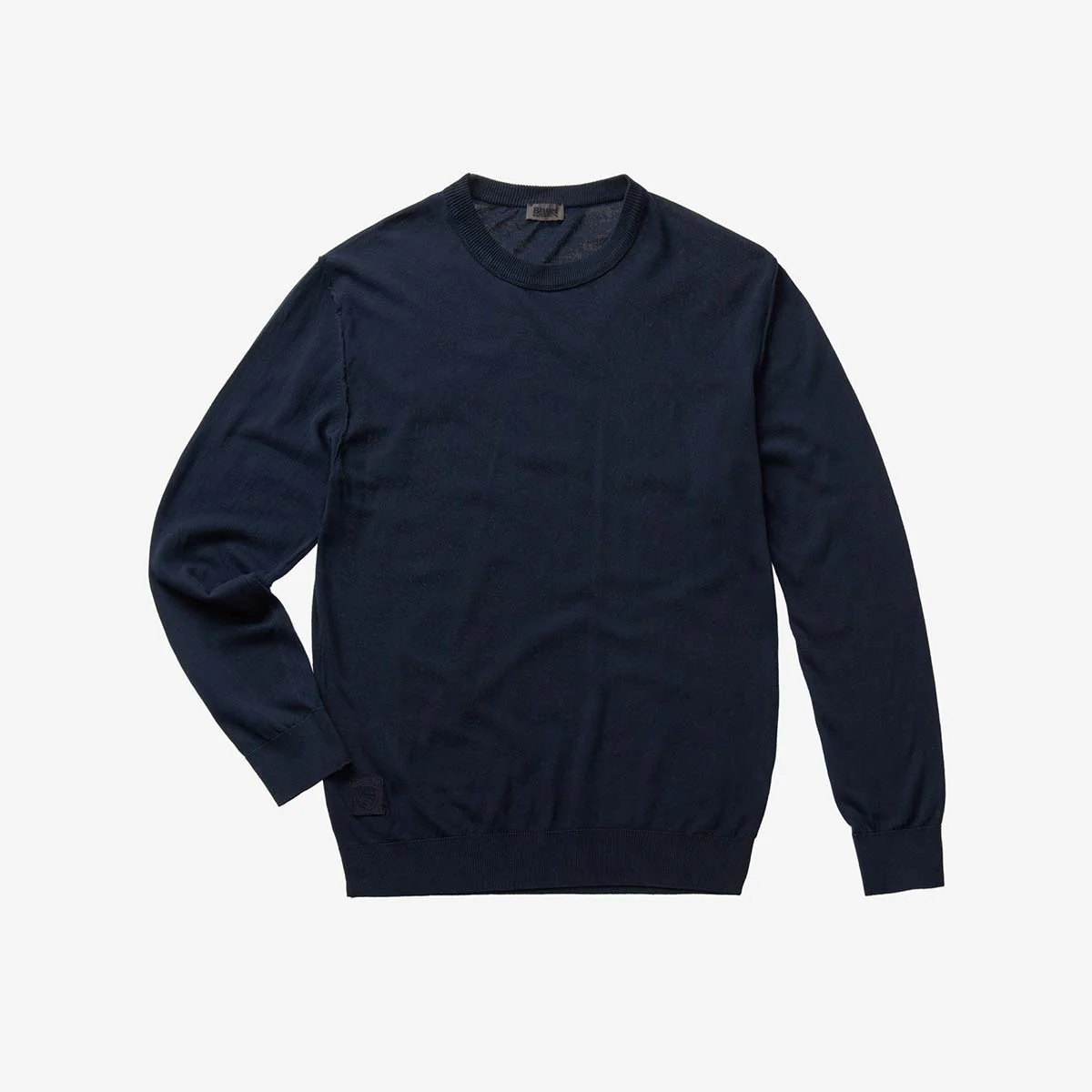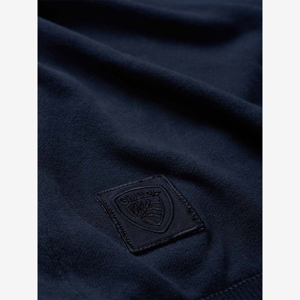 Maglia uomo girocollo in cotone a manica lunga. Girocollo, fondo del capo e polsini in costina in tono. Patch scudo Blauer ricamato sul fondo.